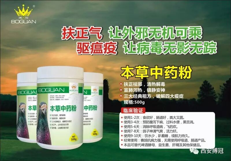 1.扶正祛邪,清熱解毒,補氣固表,涼血消腫,抑制病毒,保肝利膽、增強免疫,突破免疫抑制。用于賽鴿無名高熱、鴿瘟、腺病毒、感冒及瘟毒怪癥等,及其由細菌或病毒混合感染。