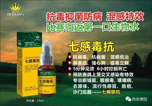 我公司技術(shù)研發(fā)部會同西北農(nóng)林科技大學(xué)、北京農(nóng)業(yè)大學(xué)、華南農(nóng)業(yè)大學(xué)專家教授依照賽鴿流行病學(xué)及其生理特點精心打造賽鴿救命神液“七感毒抗”,特異性生物活性組分,抗病毒抗病菌混感統(tǒng)治,解表癥強心肺疫毒立解,5分鐘見效,6小時控制死亡。預(yù)防賽鴿上籠交叉感染有特效,為比賽歸返第一口防病生物水。賽鴿新城疫、腺病毒、嗉囊病、衣原體、流行性感冒、鴿痘、沙門氏菌——七聯(lián)抗!