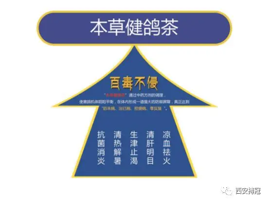 核心理念:賽鴿第一款本草中藥防病保健飲料,讓賽鴿在成長中享受健康。