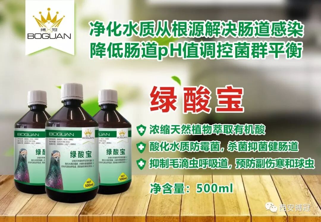 綠酸寶是根據(jù)賽鴿養(yǎng)殖的現(xiàn)實情況,考慮其飲水衛(wèi)生、營養(yǎng)消化、應(yīng)激疾病等諸方面因素研發(fā)的天然植物有機酸,不僅酸化水質(zhì),凈化飲水,消除飲水病菌污染,同時更可促進營養(yǎng)消化吸收,降低腸道pH值,調(diào)整腸道菌群平衡,為有益菌提供最佳生長環(huán)境,還可直接參與機體代謝功能,提高賽鴿抗應(yīng)激力,減少疾病發(fā)生率等功效。
