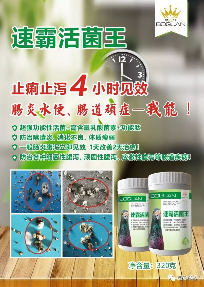 各種應(yīng)激性腹瀉:對(duì)天氣變化、鴿車運(yùn)輸、霉變飼料、飲用被污染的水等引起的消化不良、嘔吐、腹瀉有效,防治各種腸道疾病,消化不良、體質(zhì)不佳效果看得見。