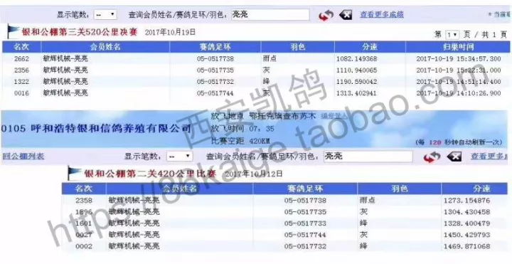 凱鴿會(huì)員——內(nèi)蒙古敏輝機(jī)械——亮亮 使用種鴿調(diào)理套餐 2017年10月19日獲得好成績(jī)