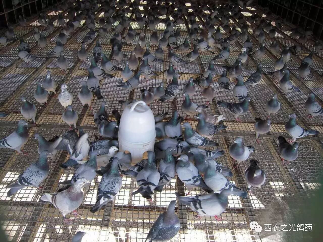三 歸巢后水浴  選擇晴天中午讓鴿子自由洗浴,水中配適量的高錳酸鉀,水浴對鴿子恢復疲勞同樣重要。可用(西農(nóng)之光誅殺菌毒威)