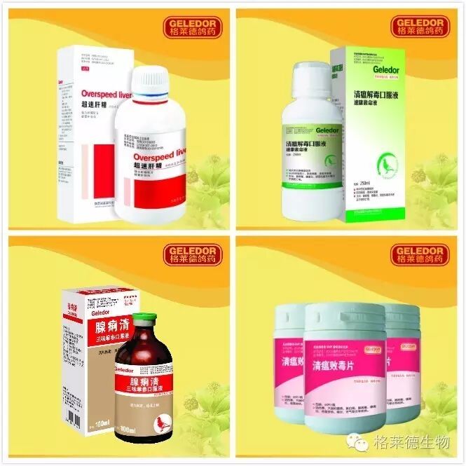 賽鴿發(fā)生吐食吐料、頑固性下痢水便、腺病毒感染、病毒性腹瀉,采食量下降時(shí),腺痢清或者黑藥水飲水(分早晚兩次),嚴(yán)重者配合速康救命液連用3天。