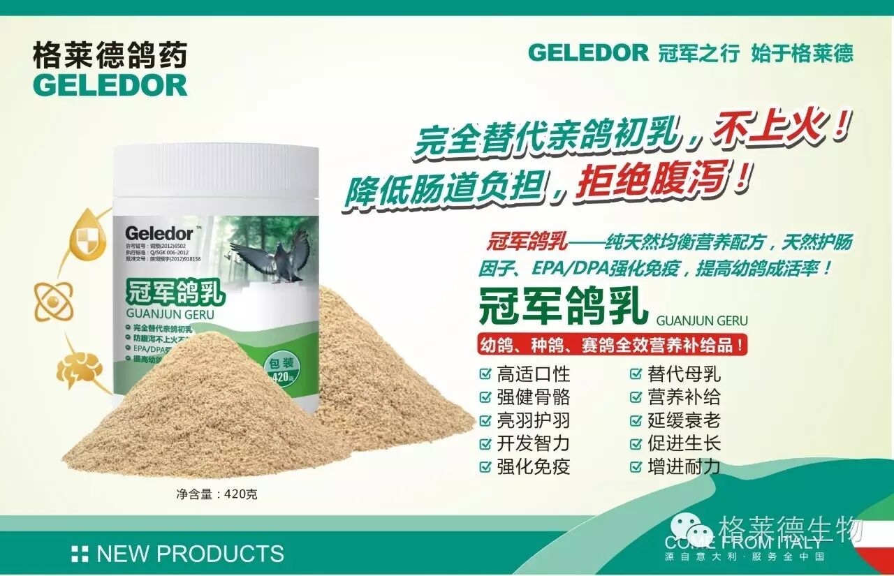 GELEDOR--創(chuàng)建于意大利GELEDOR GROUP,格萊德鴿藥產(chǎn)品暢銷(xiāo)歐洲20年,始終致力于賽鴿藥品研發(fā)、疾病防治及飼養(yǎng)管理,為廣大鴿友及公棚提供優(yōu)質(zhì)產(chǎn)品和服務(wù),愿與國(guó)內(nèi)外同行攜手并進(jìn),共創(chuàng)賽鴿事業(yè)之輝煌!