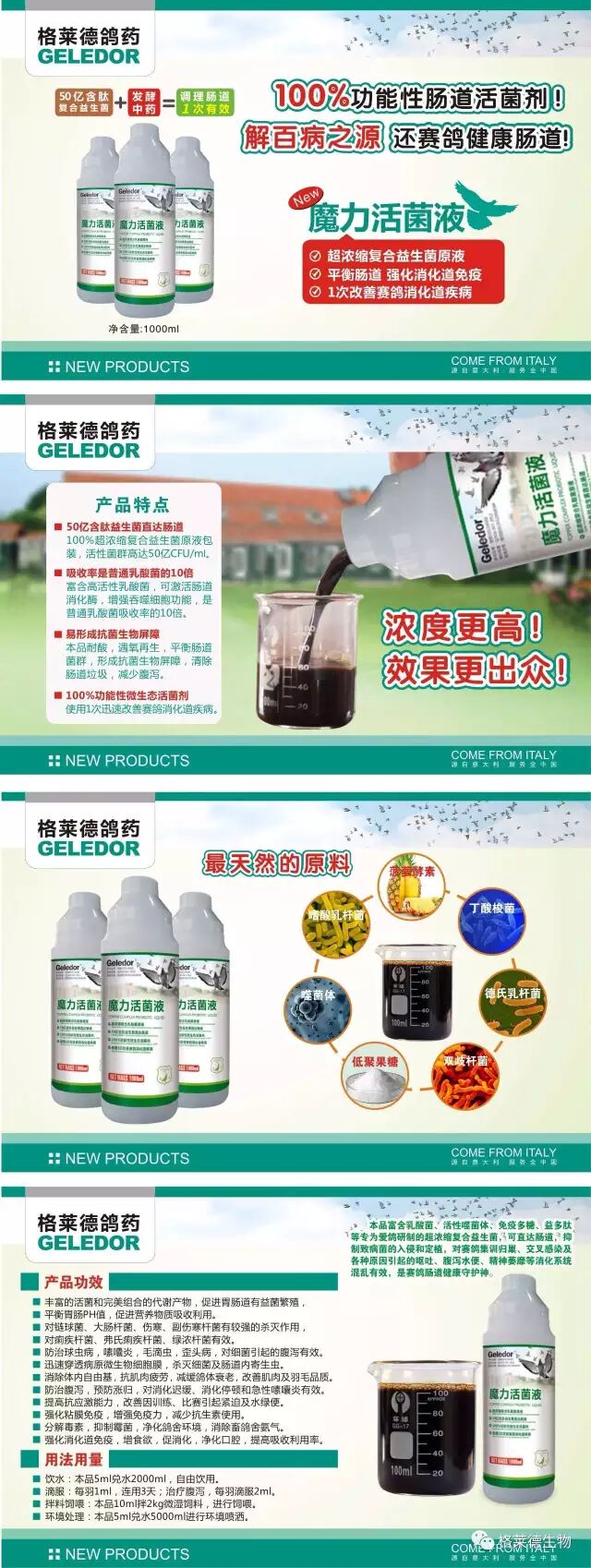GELEDOR--意大利格萊德鴿藥致力于賽鴿藥品研發(fā)、疾病防治及飼養(yǎng)管理,為廣大鴿友及公棚提供優(yōu)質(zhì)產(chǎn)品和服務(wù),愿與國(guó)內(nèi)外同行攜手并進(jìn),共創(chuàng)賽鴿事業(yè)之輝煌!