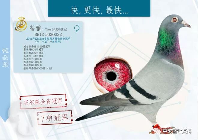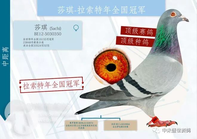 “莎琪”(Sachi):本身獲得拉索特年全國(guó)19155羽冠軍(23848羽最高分速)、波治全國(guó)33524羽32位