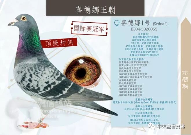 “喜德娜1號(hào)”(Sedna 1):本身獲得拿邦國(guó)際賽5870羽冠軍,喬斯.托內(nèi)鴿系黃金種雌