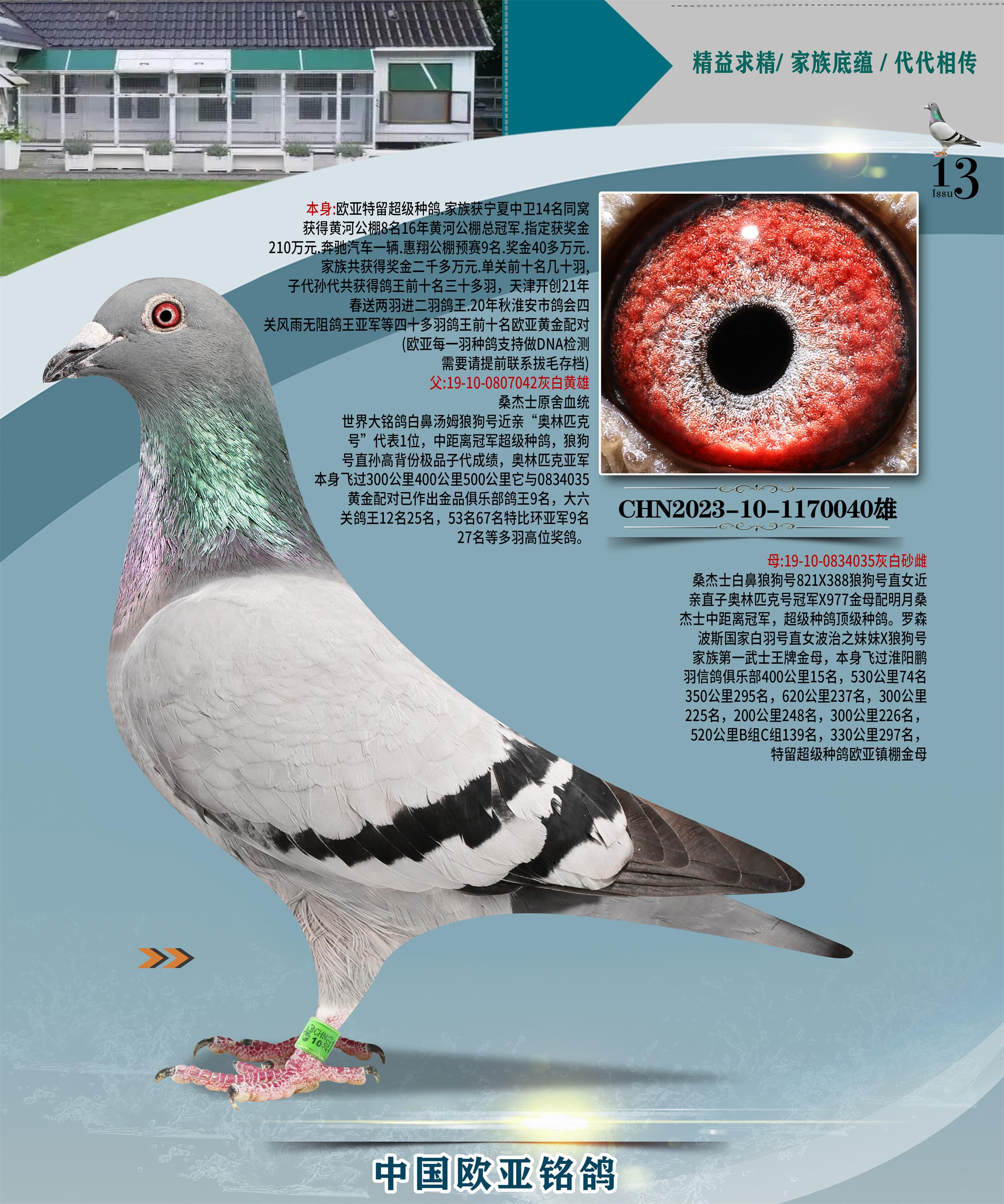 24年秋南京特比環(huán)歐亞榮獲大團體冠軍.小團體冠軍551公里大特比13名.14名.16名.19名.20名.21名.24名.26名.27名.28名.42名.52名.54名.57名.65名.66名.68名.70名.71名.72名.74名.76名.80名.82名.83名.84名.85名.86名.90名.92名.110名.116名.121名.122名.128名.131名.158名.161名.164名.165名.166名.172名.174名.177名.182名.195名.196名.201名.205名.208名.210名.216名.253名.269名.275名.276名.294名.296名.299名,,24年秋云南天南銅都公棚決賽415名.天南銅都小棚決賽409名.云南玉活公棚決賽102名.490名.團體32名上籠二羽進二羽,天南銅都大棚506公里決賽445名。熱烈祝賀河北省巨鹿縣李蘭生老師用歐亞泰山號血系連續(xù)十一年奪冠軍,河北省國家賽冠軍.全國季軍等多次前十名高位,揚州王軍王總用歐亞利奧24年春季獲山東翔宇公棚決賽33名蓋比53名。南京劉正龍劉總用歐亞蓋比獲得24年秋山東濰坊國際公棚決賽42名.精英賽30名.三關(guān)鴿王71名.決賽86名.加站賽16名.南京市特比環(huán)A組鴿王9名.B組鴿王5名.6名.C組鴿王5名.精英賽冠軍4名.技能賽A組冠軍4名.5名.秦淮區(qū)特比環(huán)榮獲15名.46名.48名.87名。四川西昌徐亮徐總用歐亞利奧獲得涼山州聚友決賽177名.第二關(guān)亞軍雙關(guān)鴿王19名.三關(guān)鴿王105名.云南豪庭公棚決賽603名。熱烈祝賀24年四川重慶翔園鴿舍用歐亞泰山號榮獲春季400公里冠軍.秋季500公里冠軍,河北王總用詹森X利奧獲得千羽千翔公棚400公里冠軍,廣東蔡楷煥榮獲24年秋愛好者 賽鴿俱樂部三關(guān)鴿王季軍.一關(guān)420公里99名.二關(guān)450公里11名.三關(guān)520公里32名.單關(guān)季軍.7名.12名,江西李衛(wèi)興榮獲貴州紅楓公棚8名.共翔俱樂部寄養(yǎng)棚四關(guān)綜合鴿王30名.一關(guān)400公里78名.二關(guān)500公里55名.三關(guān)520公里37名.四關(guān)500公里57名.同父母獲公棚18名.雷鳴獲得武漢黃浦育翔中心冠軍,四川陳文獲得四川明鴻俱樂部300公里夢幻2名.3名.4名.9名.10名.13名.14名.15名.31名.34名.40名.41名.42名.43名.69名.71名.72名.73名.74名.94名.95名.97名.98名.99名.419公里決賽榮獲總冠軍7名.總共歸巢9羽,四川徐亮獲豪庭決賽603名,山西鄭勇獲得山西泰鑫公棚決賽255名詹森紅狐,熱烈祝賀馬總獲得開爾(飛躍隊)決賽9名獲獎金1310000萬元.第一關(guān)52名,天津津福資賽180公里96名.獲獎金429543萬元,歐亞支持全國鴿友24年秋多人報喜 祝大家取得更好成績,給歐亞報喜鴿友歐亞決定給每人贈送一羽超級種鴿。歐亞俱樂部特比環(huán)多關(guān)鴿王成績:15年秋淮安特比環(huán)黑色星期一全會上籠9700多羽,當(dāng)天無鴿歸巢,第二天全會歸巢357羽,本舍歸巢158羽.前十名八羽.前一百名歸巢57羽,16年春季獲五關(guān)鴿王總冠軍,總亞軍四名.六名.七名.九名.十名.晶藝俱樂部520公里冠亞季軍5名.6名.7名.9名.11名等,火車頭冠軍.季軍6名.8名.9名.10名,16年秋晶藝俱樂部特比環(huán)520公里亞軍.季軍4名.6名.7名.9名,15年春南京白下特比環(huán)冠軍.亞軍.季軍6名.7名.8名.9名.10名.指定鴿A B組獲得冠軍.亞軍.季軍4名.5名.,17年淮安特比環(huán)亞軍.4名.5名.7名.8名.10名.六關(guān)鴿王總冠軍.4名.6名.9名.10名,寄養(yǎng)棚宿遷劉總20羽特比環(huán)獲冠軍.季軍.4名.7名.8名.9名等。18年榮獲萬羽特比環(huán)六關(guān)鴿王總冠軍.總亞軍.總季軍.6名.8名.十名.單關(guān)四羽冠軍.二羽亞軍.四羽季軍.前十名27羽。19年秋萬羽特比環(huán)六關(guān)鴿王總亞軍.總季軍.5名.8名等,單關(guān)二羽冠軍.三羽亞軍.一羽季軍前十名31羽。20年秋淮安市鴿會四關(guān)特比環(huán)大賽風(fēng)雨無阻鴿王亞軍.鴿王六名,金品俱樂部萬羽特比環(huán)六關(guān)鴿王總冠軍,總亞軍.四名.五名.六名.七名.八名.十名.前二百名鴿王35羽,單關(guān)冠亞季軍前十名四十多羽,火車頭五關(guān)鴿王季軍.六名.八名.前二百名鴿王十七羽。20年春榮獲淮安五區(qū)一市四關(guān)鴿王總冠軍.亞軍.四名.八名.九名。21年秋榮獲金品萬羽特比環(huán)大賽六關(guān)鴿王總亞軍.總季軍.四名.七名.九名.十名.單關(guān)冠亞軍季軍前十名三十多羽;疖囶^協(xié)會鴿王六名.七名.十名.單關(guān)前十名十七羽。22年秋榮獲鴿王總冠軍.總亞軍.5名.7名.8名.9名.11名.單關(guān)冠亞季軍前十名三十多羽,第一關(guān)單關(guān)前二百名四十多羽,第二關(guān)前二百名三十多羽,第三關(guān)前二百名四十多羽,第四關(guān)前二百名四十多羽,第五關(guān)前一百名53羽。23年秋榮獲鴿王季軍.五名.八名.十名.13名.17名.20名.27名等多羽鴿王.單關(guān)前十名二十多羽。公棚.寄養(yǎng)棚部分成績:16年秋寧夏黃河公棚總冠軍電腦戈馬力指定通炮冠軍,17年送八羽參賽獲得鴿王八名進獎四名,支持韓總榮獲八名。支持鴿友榮獲寧夏中衛(wèi)公棚決賽總冠軍.精英賽冠軍,支持18年寧夏黃河公棚決賽冠軍詹森X泰山。安徽鼎博寄養(yǎng)棚院內(nèi)外四關(guān)鴿王總冠軍.鴿王十七名.三十七名同窩,鴿王39名.42名.58名.67名。18年山東公棚預(yù)賽冠軍.決賽65名.送八羽進獎五羽.指定獲奔馳汽車一輛。支持鴿友獲得云南藍云公棚冠軍.蓋比X佛卡門。支持鴿友榮獲云南銀集公棚決賽冠軍 詹森427X520血系 速度賽6700羽冠軍。17年榮獲金馬俱樂部寄養(yǎng)棚四關(guān)鴿王總冠軍.季軍.六名.八名.第一關(guān)冠軍.亞軍.季軍四名.七名.十一名.金牌教練獎。支持鴿友18年北京費翔公棚預(yù)賽九名電腦X