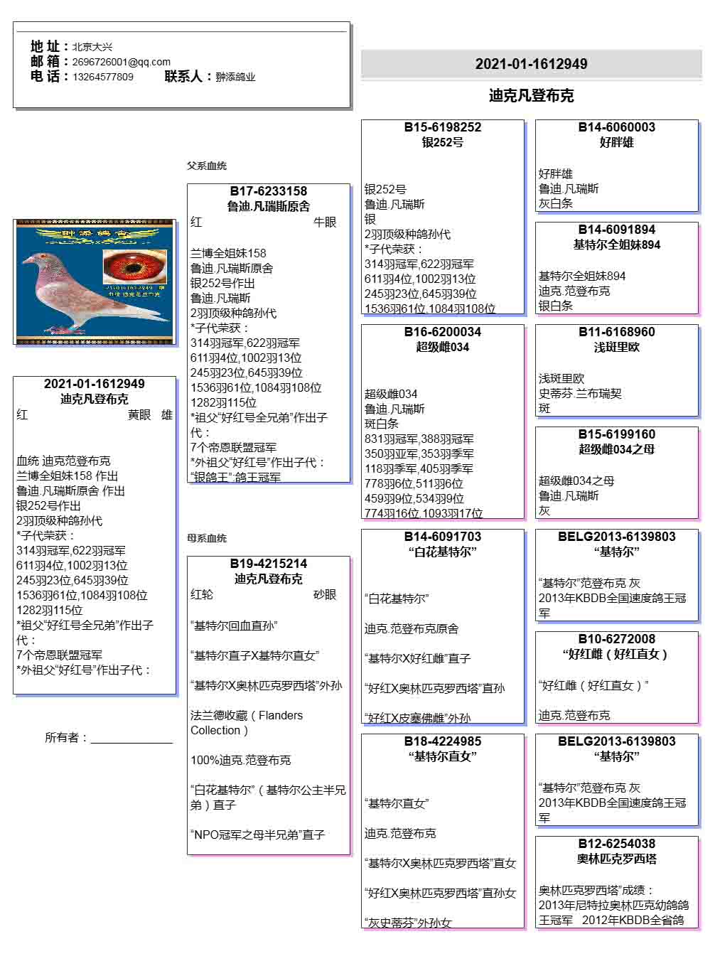 - 當(dāng)前查看拍賣(mài)鴿:凡登布克紅色金童949
