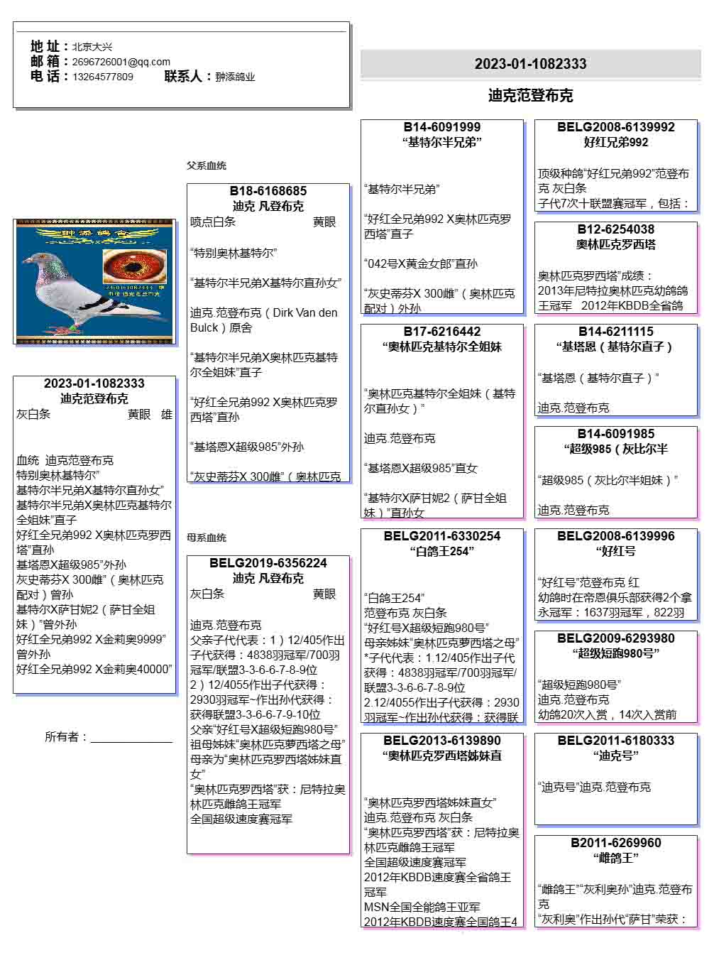 - 當(dāng)前查看拍賣鴿:開爾鴿王血系凡登布克333