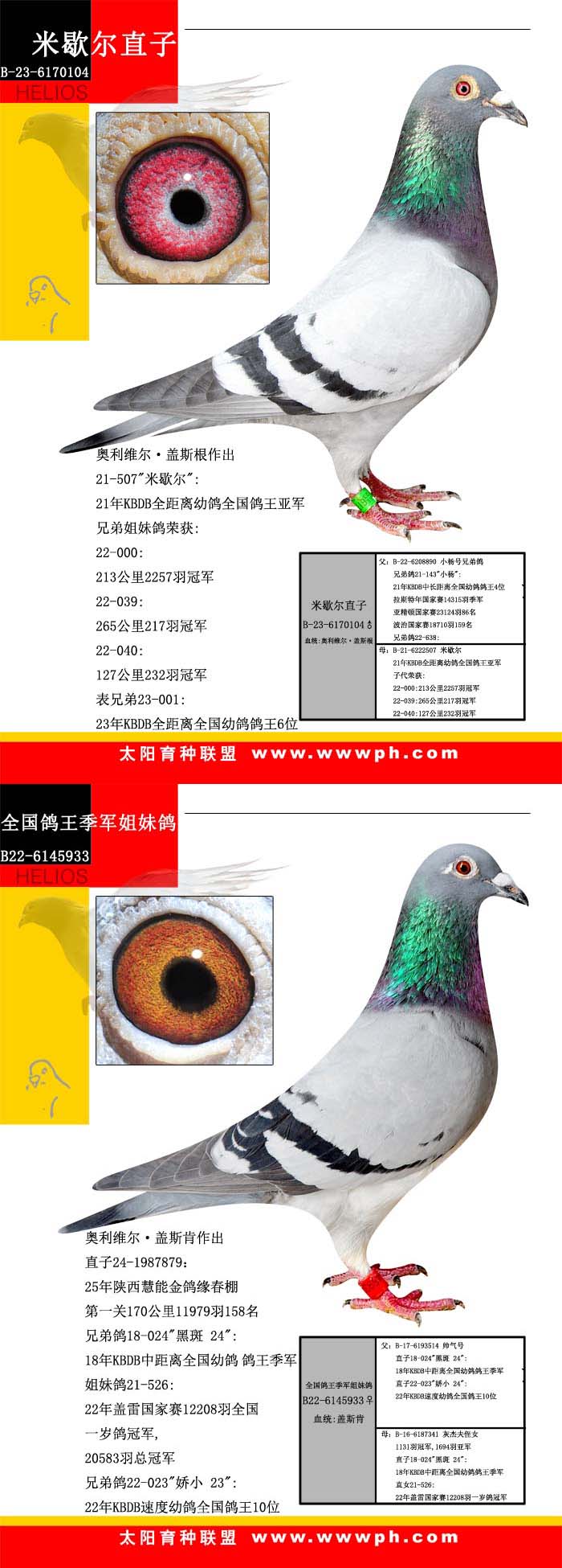 母:B-22-6145933 全國(guó)鴿王季軍姐妹鴿