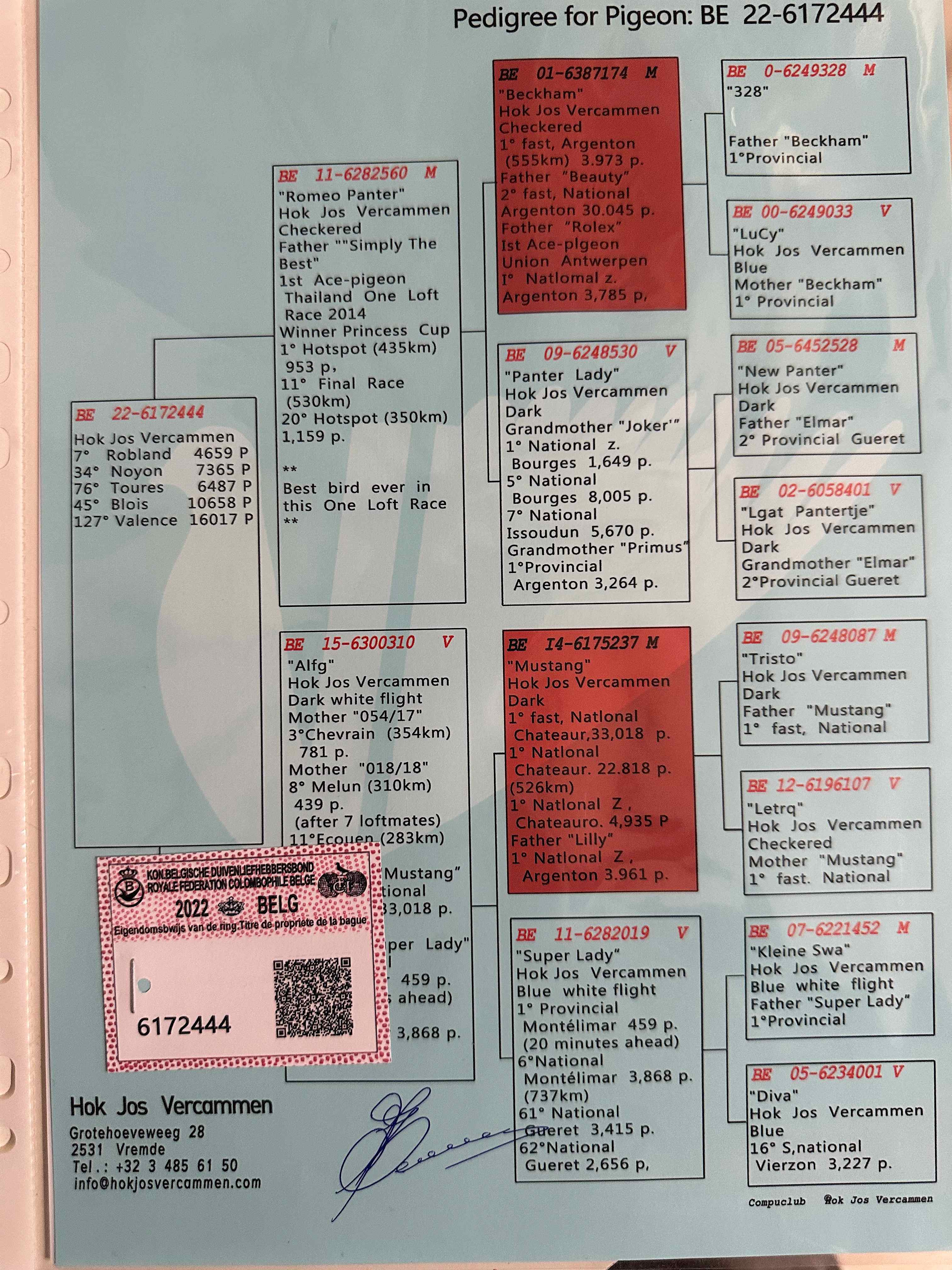 - 當前查看拍賣鴿:喬司佛卡門“羅密歐潘特”直子超級444號