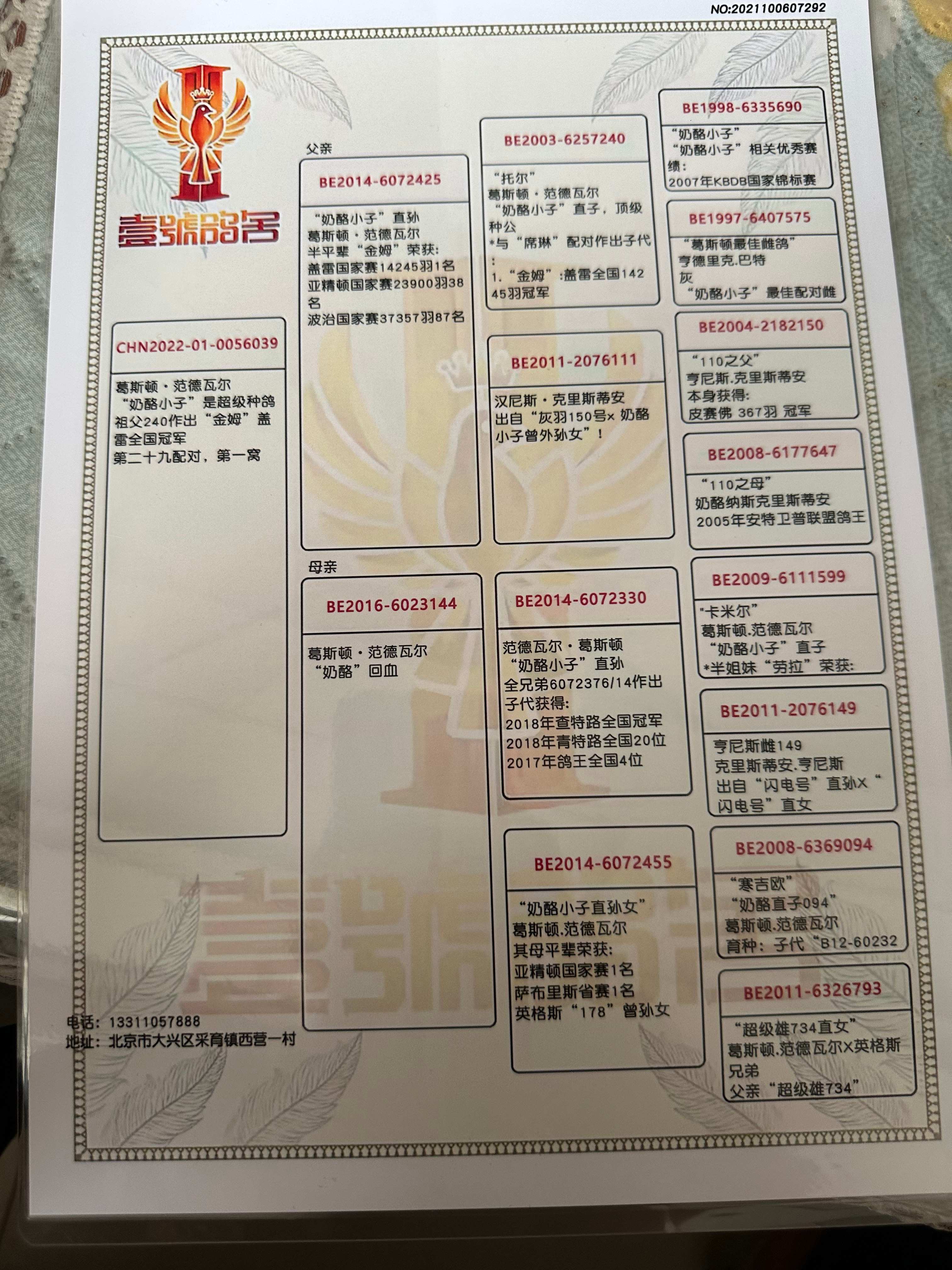 1597109 北京李大哥清舍拍賣會(huì)~永久保真~可上門看鴿! ¥100000元 0次