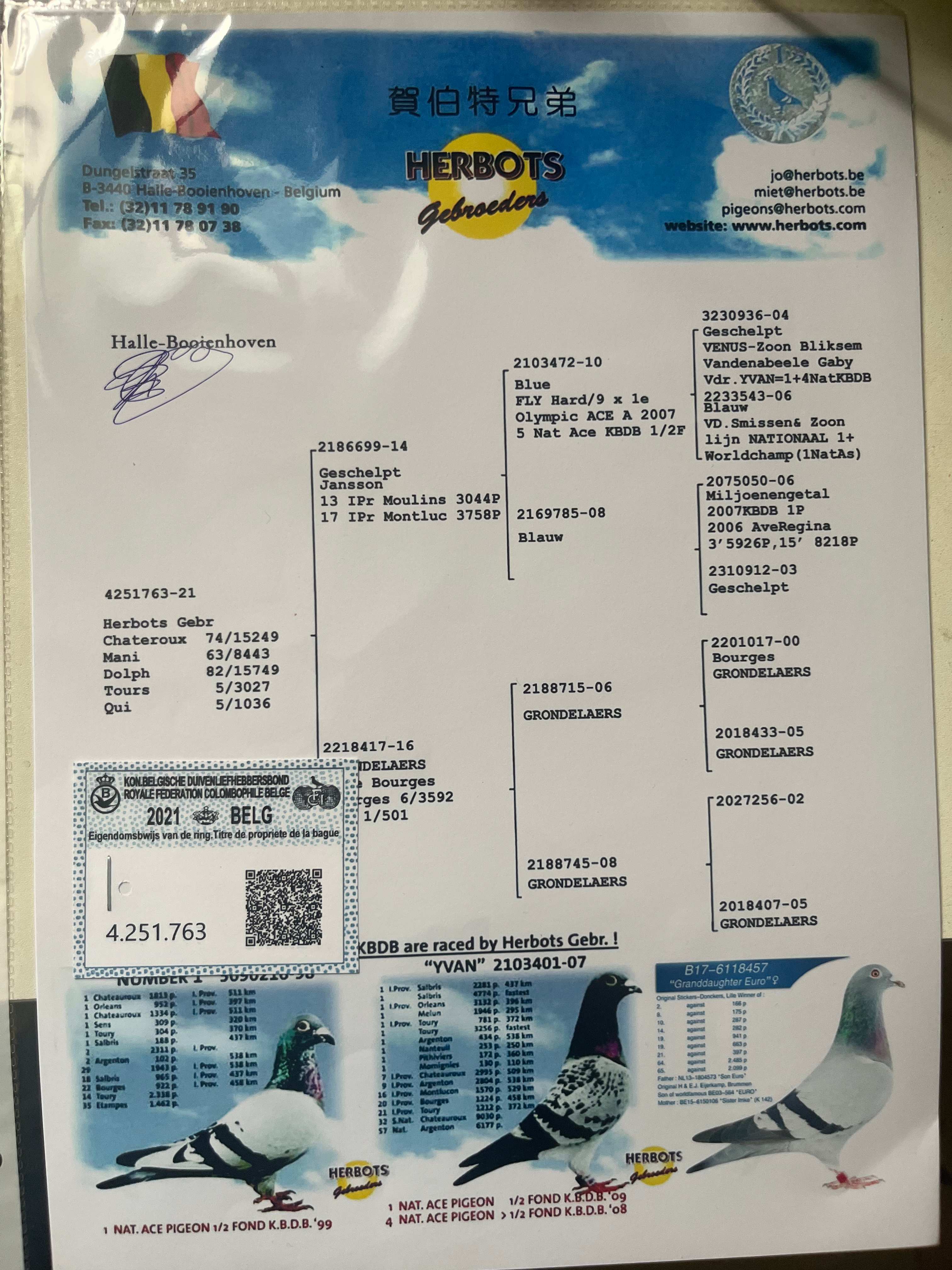 1597123 “總教頭家族”伯格曼原舍超級種鴿 ¥400元 2次