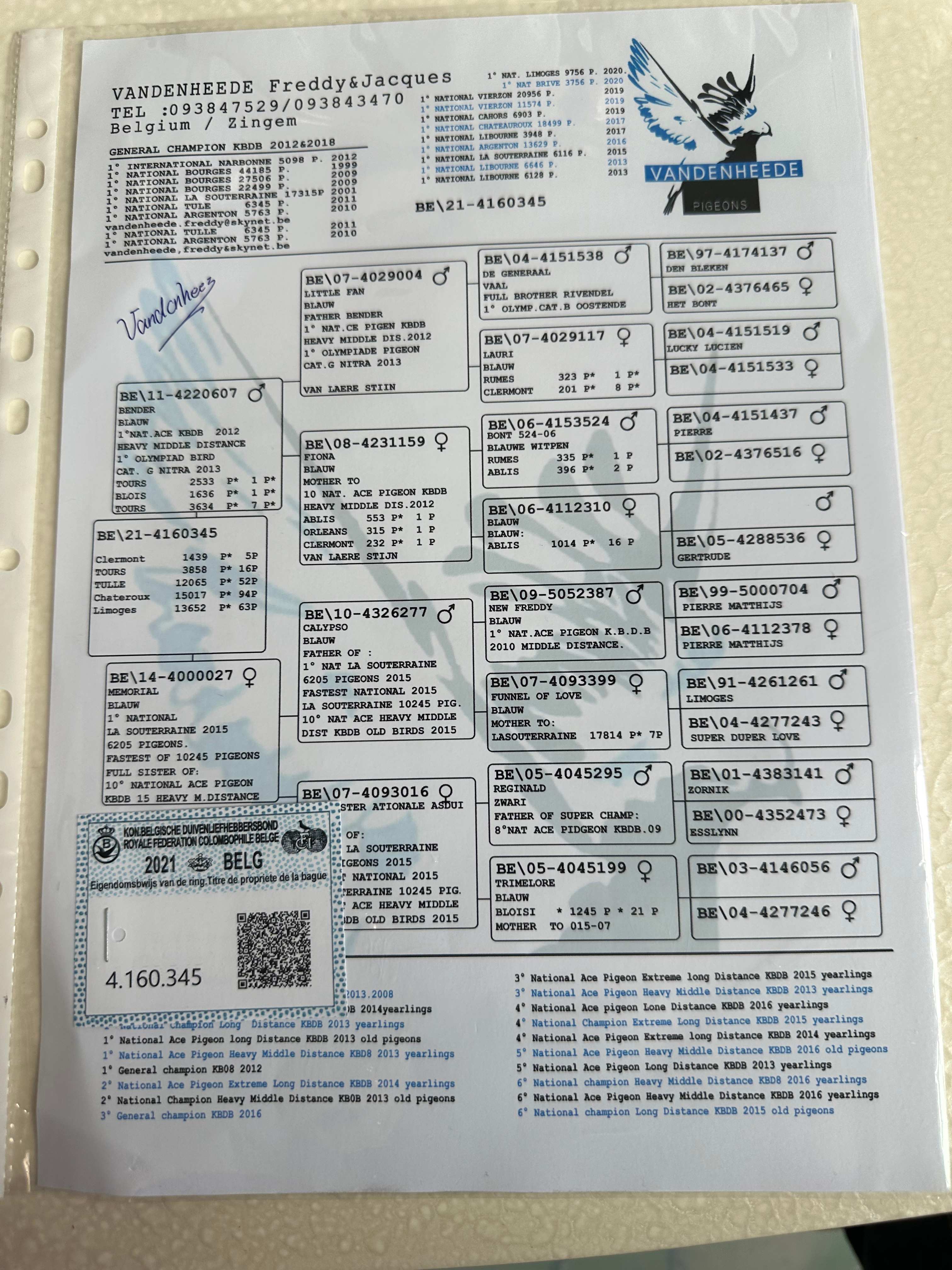 - 當前查看拍賣鴿:福雷迪范西兄弟原舍 超級賽將種公“本德爾