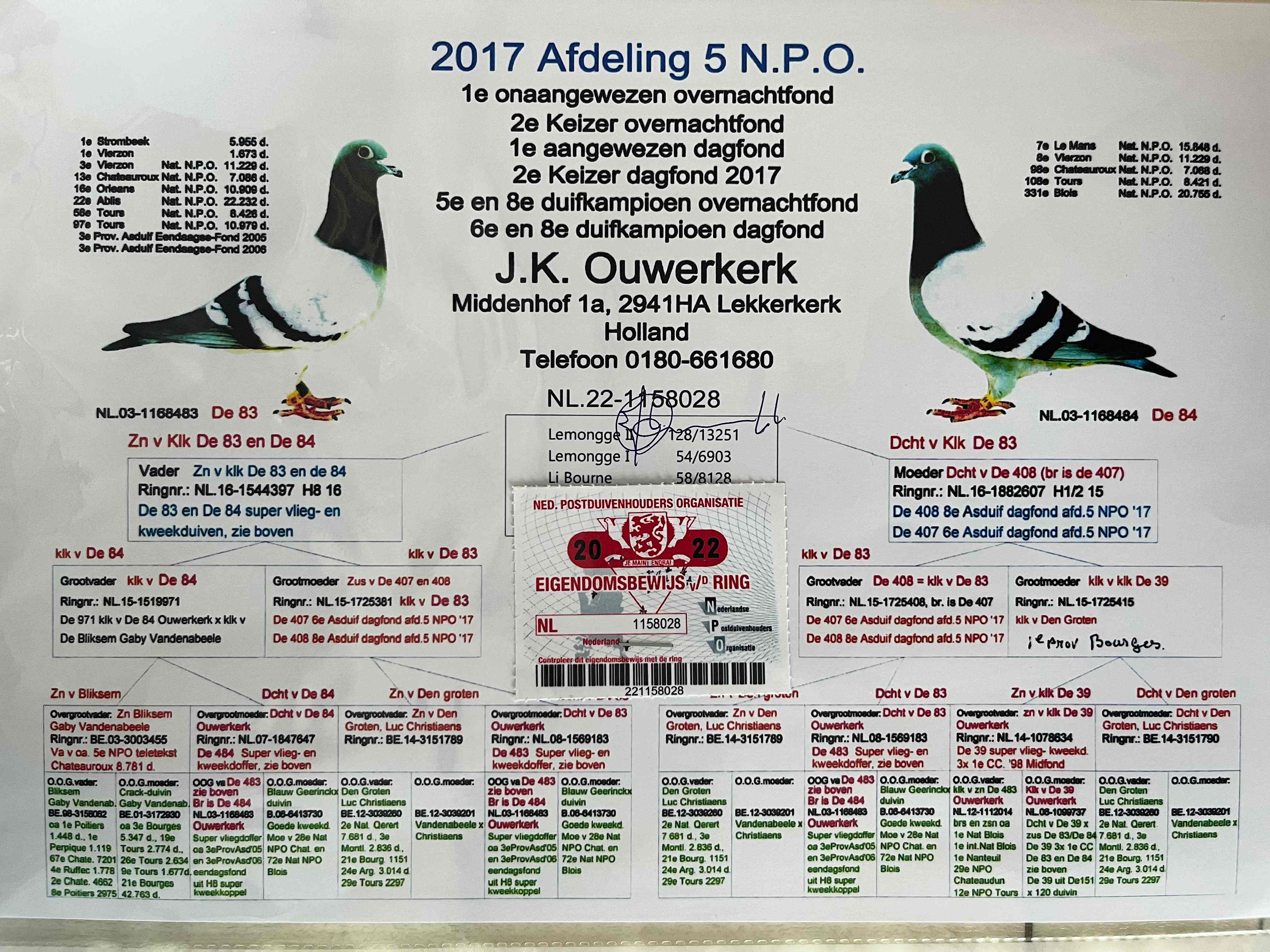 1597227 | 奶酪240近親回血 本身KBDB一歲鴿19位 | ¥400元 | 2次 |