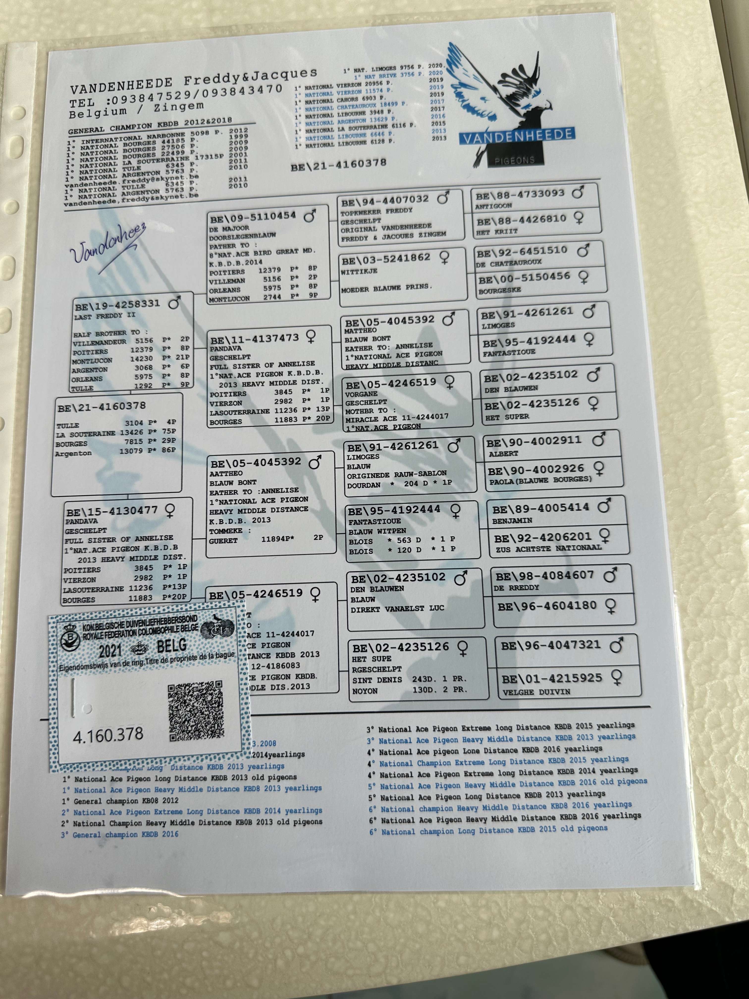 - 當(dāng)前查看拍賣鴿:福雷迪.范西兄弟 上校孫代鴿