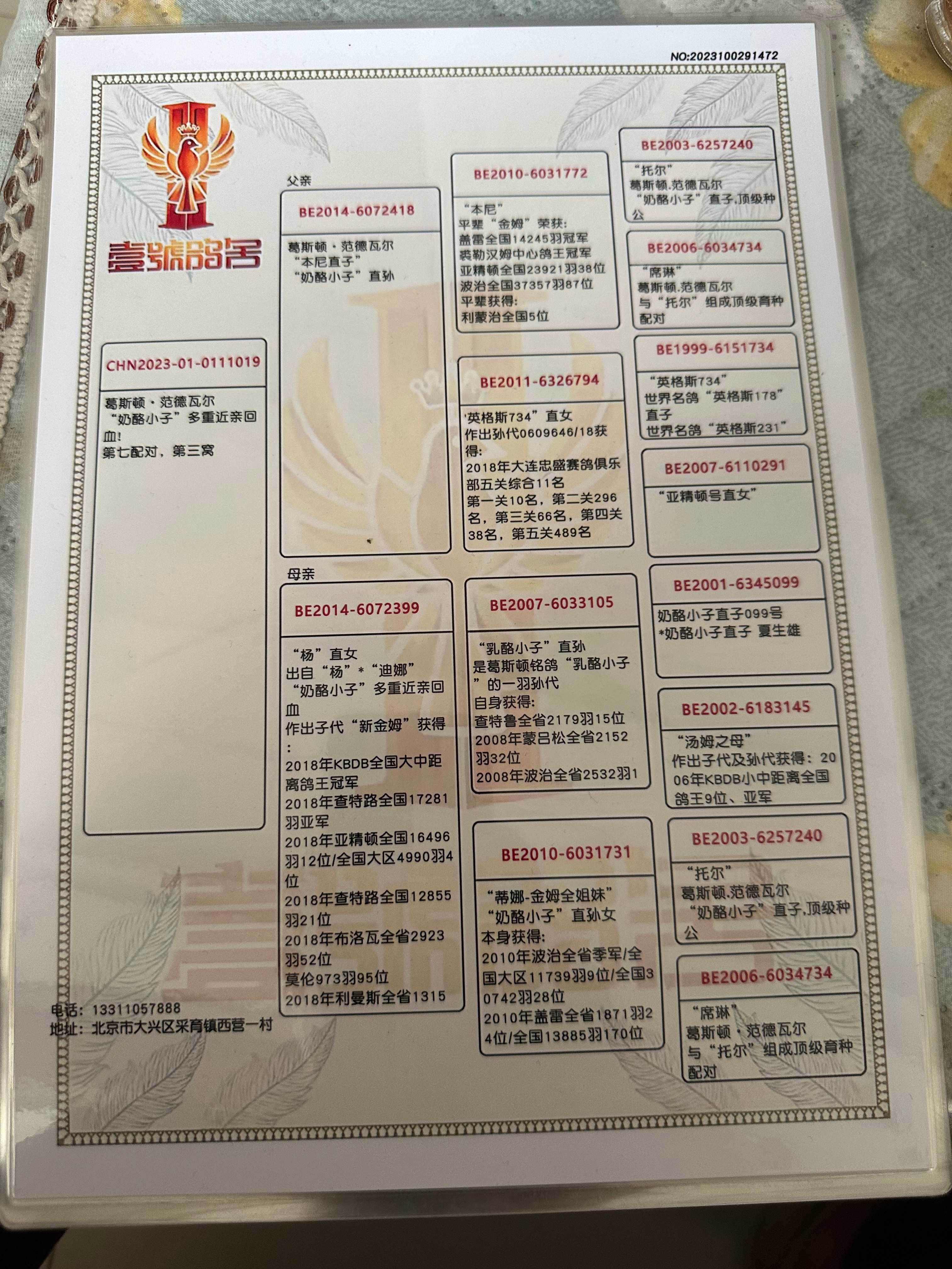 - 當前查看拍賣鴿:北京壹號鴿舍張斌“奶酪”血系 國內(nèi)最好的