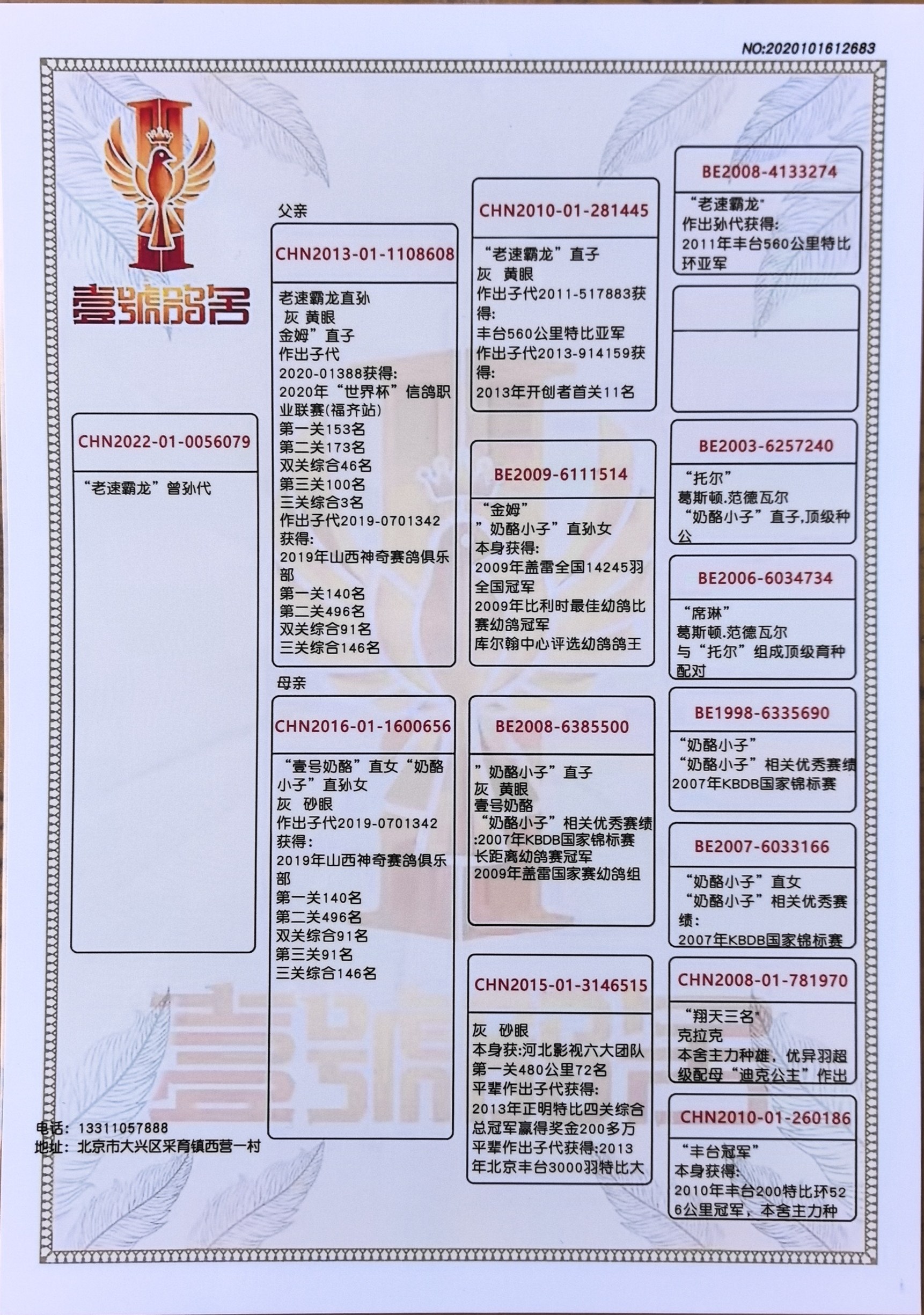 - 當(dāng)前查看拍賣鴿:北京壹號(hào)鴿舍 “老速霸龍”曾孫代