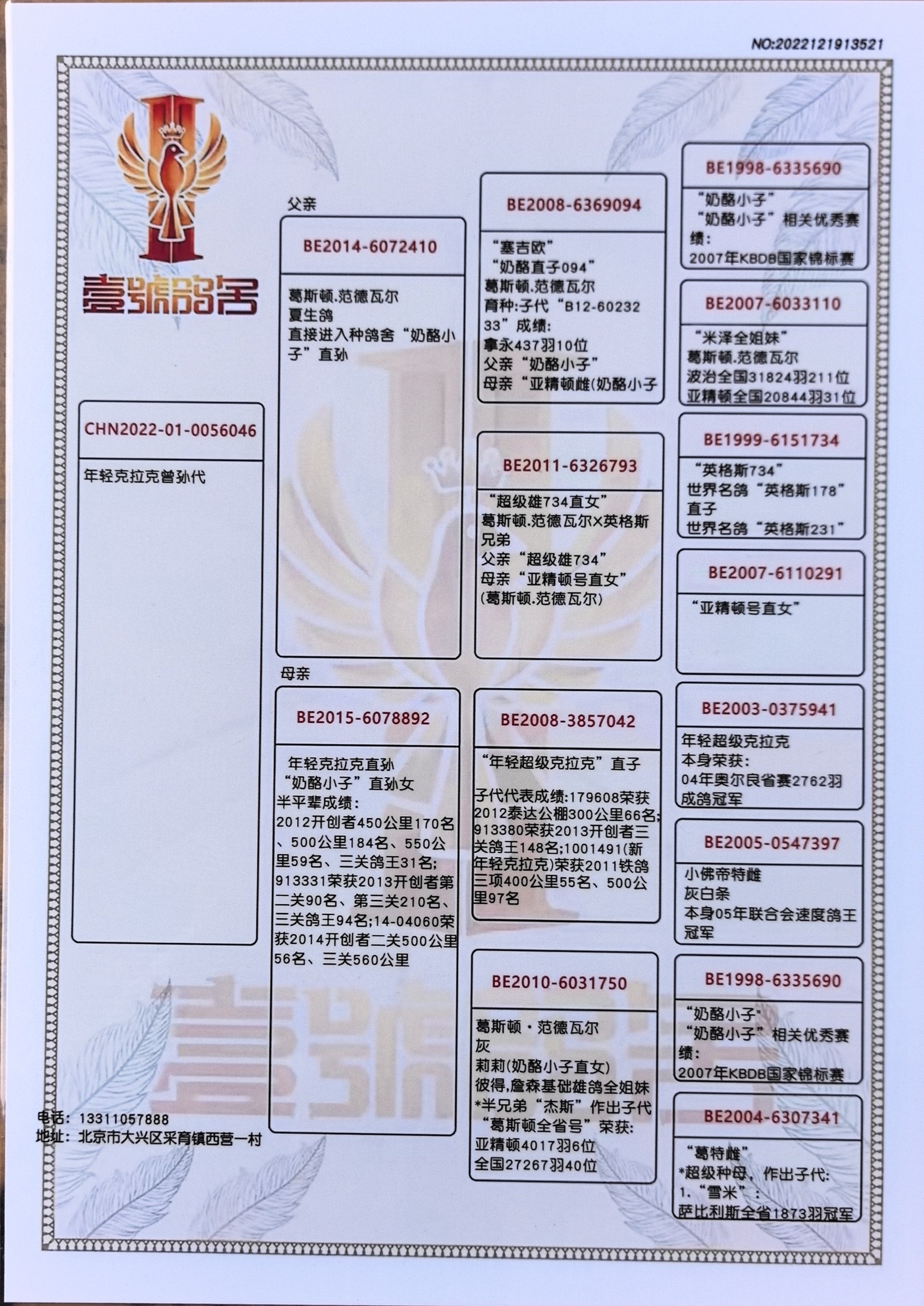 - 當(dāng)前查看拍賣鴿:北京壹號(hào)鴿舍 “年輕克拉克曾孫代”