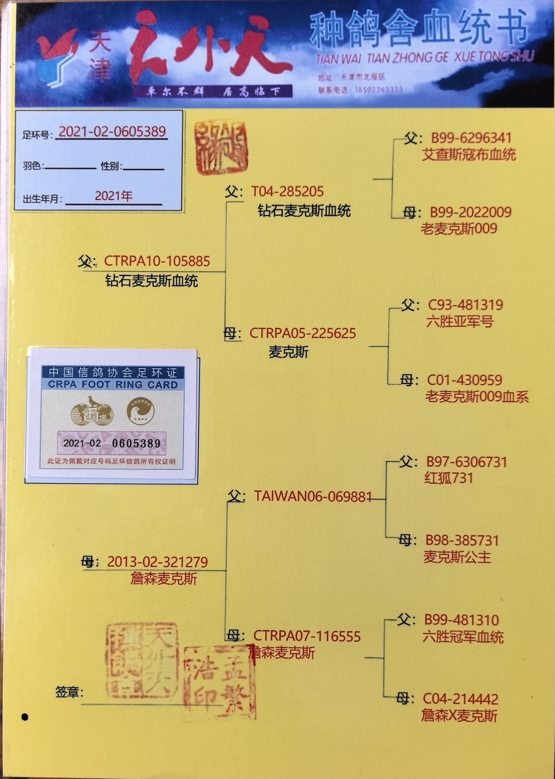 - 當(dāng)前查看拍賣(mài)鴿:天外天 鉆石麥克斯×詹森麥克斯