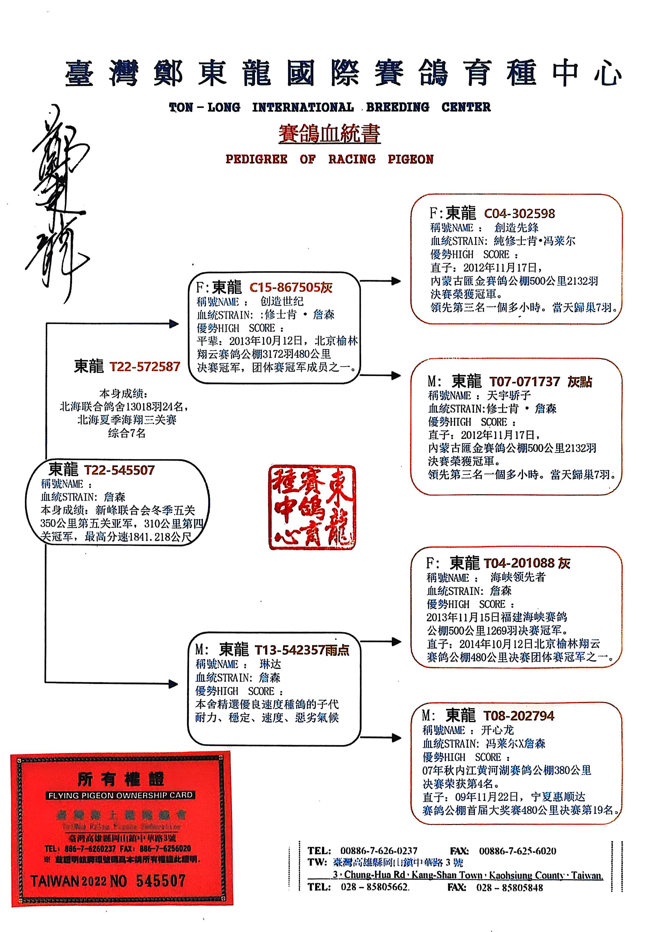 1597444 臺(tái)灣飛事連竟翔中心詹森血系本身參賽51542羽全高位 ¥200元 1次