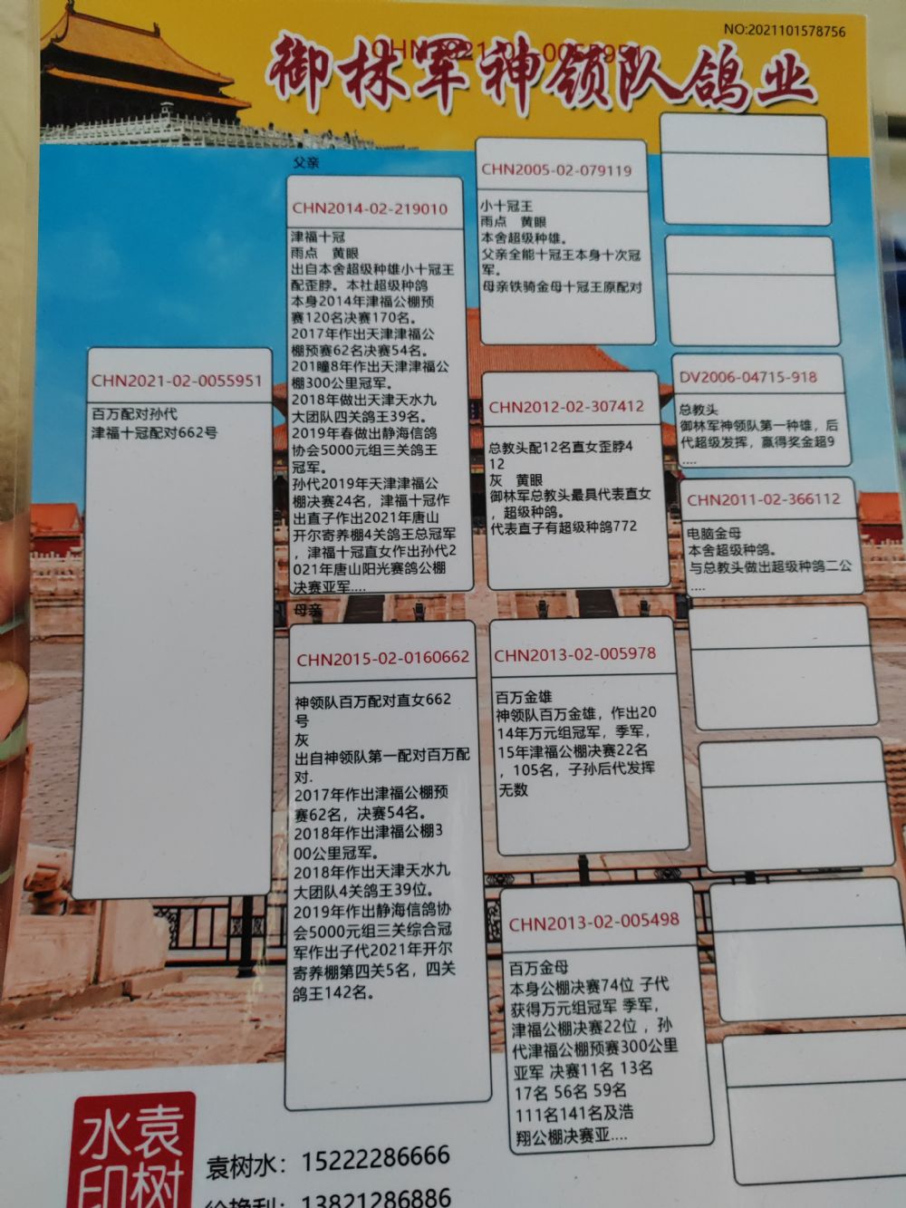 1597471 | 血統(tǒng) 詹森紫光皇帝鴿王6位 | ¥200元 | 1次 |