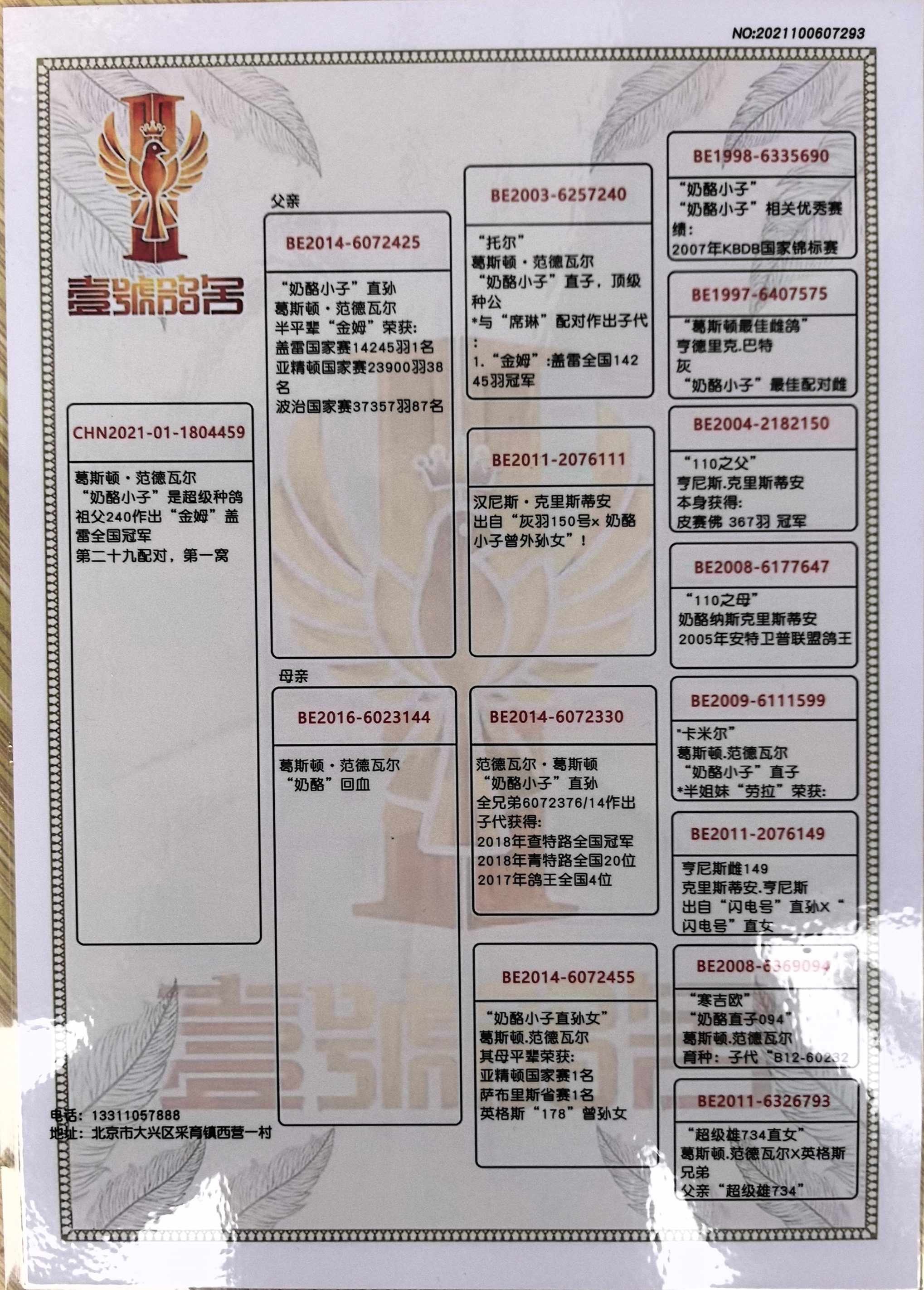 僅接受來(lái)自可信賴(lài)、有持續(xù)實(shí)戰(zhàn)記錄的鴿源。2.血統(tǒng)核驗(yàn):