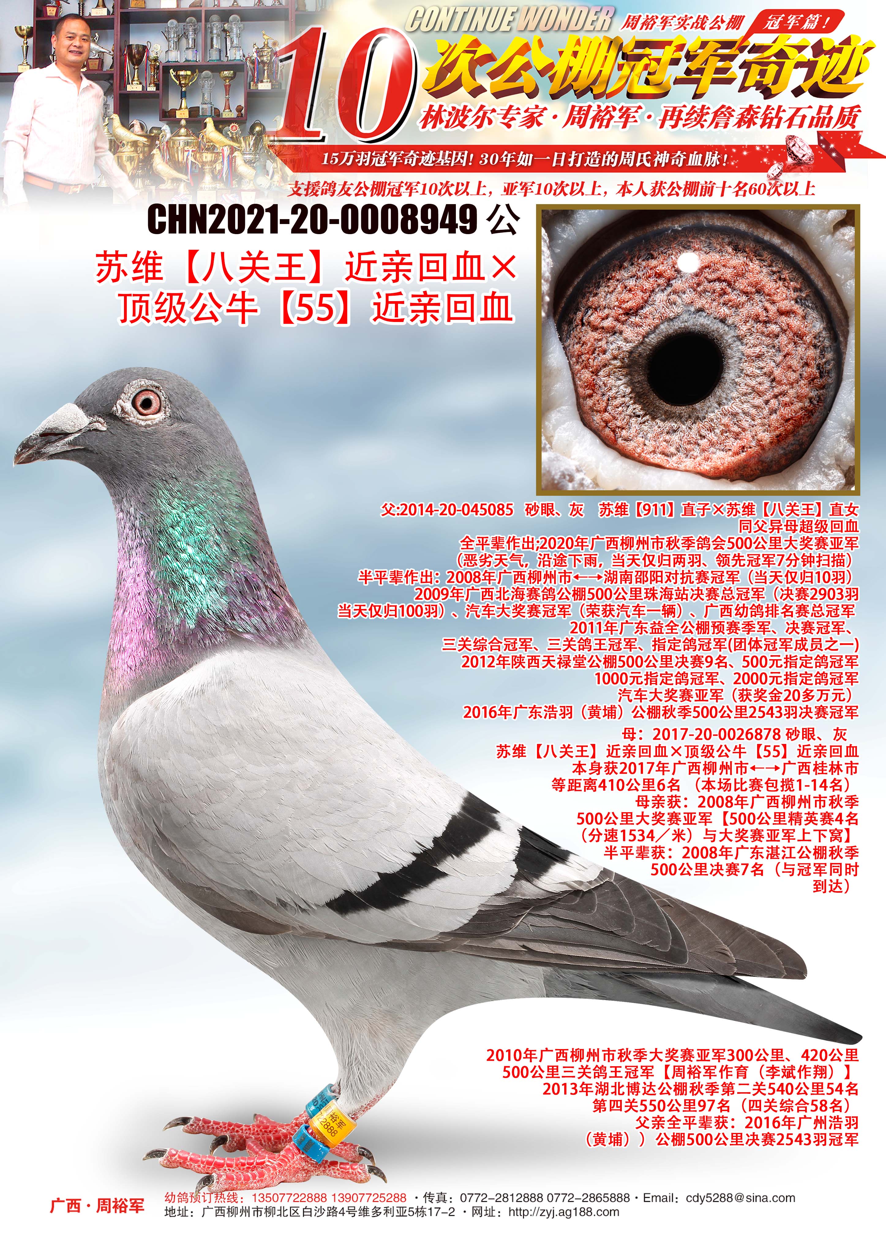 2010年廣西柳州市秋季大獎賽亞軍、300公里、420公里、500公里三關(guān)鴿王冠軍(【周裕軍