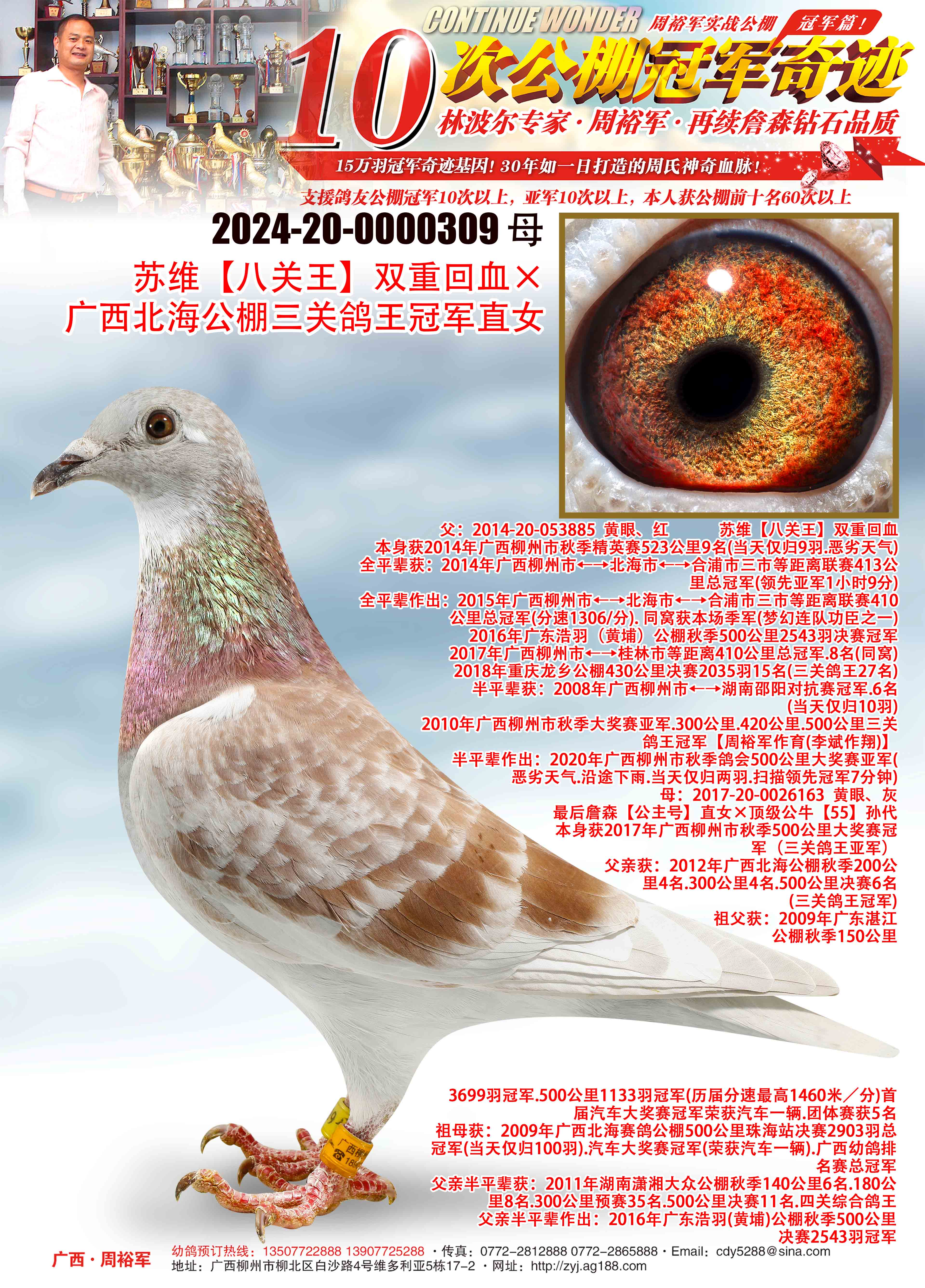 2024-20-0000309 砂眼、紅 ♀ 蘇維【八關(guān)王】雙重回血×廣西北海公棚三關(guān)鴿王冠軍直女