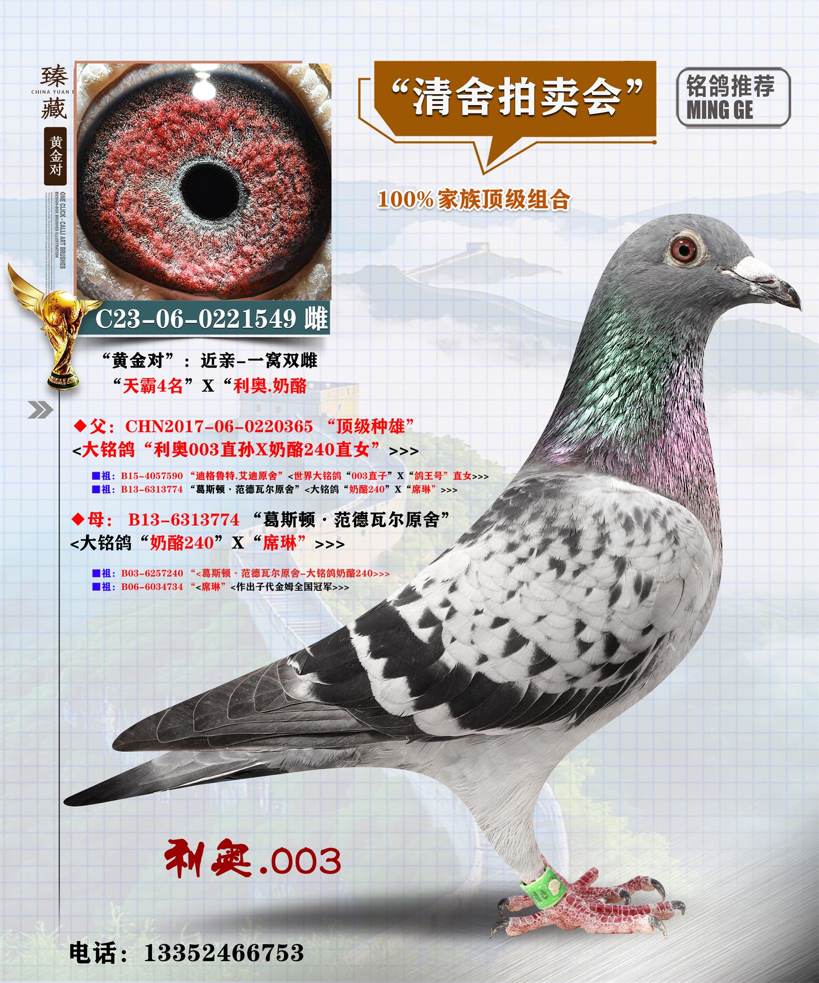 <大銘鴿“利奧003直孫X奶酪240直女”>>>