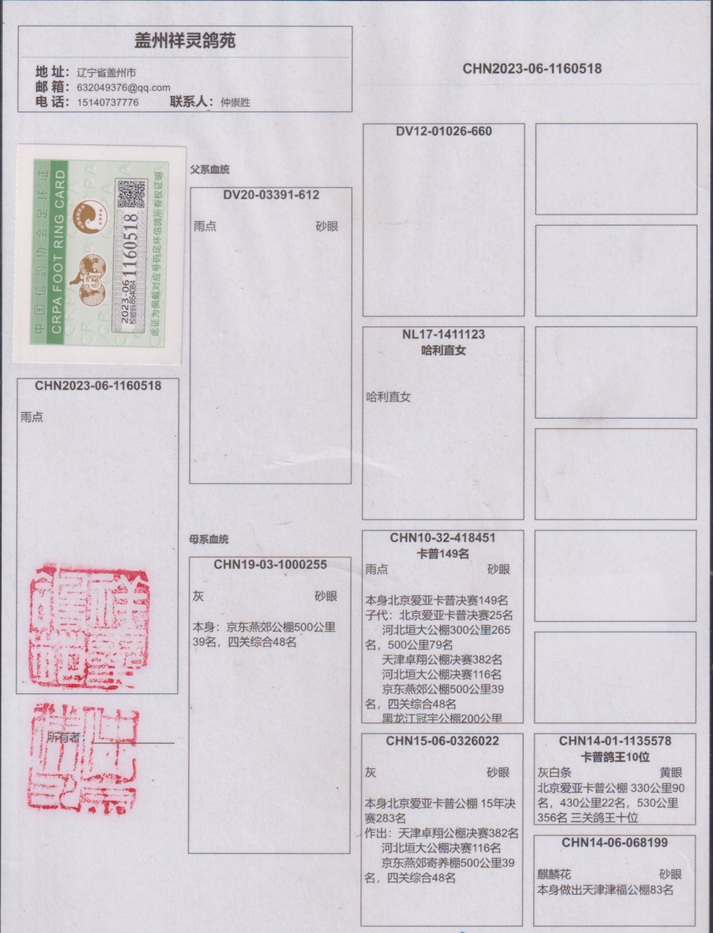 | 1601478 | 《蓋州祥靈鴿苑》蓋比新閃電號X卡普不敗家族 | ¥500元 | 0次 |