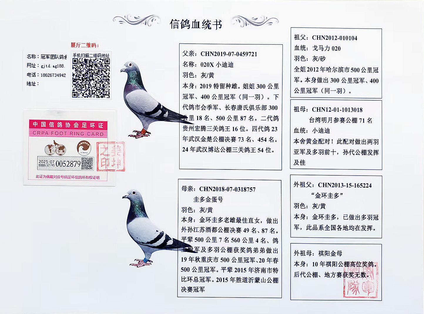 血統(tǒng)書足環(huán)卡隨鴿發(fā)出,低價位高品質幼鴿,種賽皆宜。良心做人,所有成績血統(tǒng)假一賠百,不做虛假宣傳!當曖贅氪菩塾啥嗄昃楹屯雅卸轄齬┎慰跡�