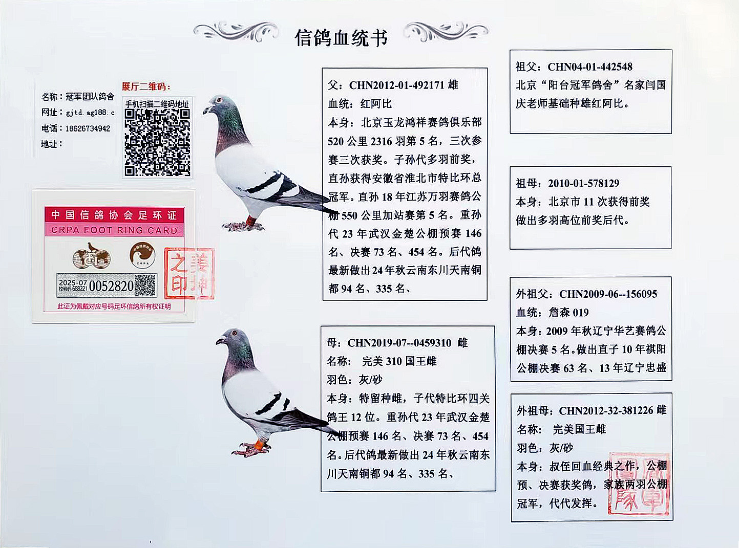 血統(tǒng)書足環(huán)卡隨鴿發(fā)出,低價(jià)位高品質(zhì)幼鴿,種賽皆宜。良心做人,所有成績(jī)血統(tǒng)假一賠百,不做虛假宣傳!當(dāng)曖贅氪菩塾啥嗄昃楹屯雅卸轄齬┎慰跡�