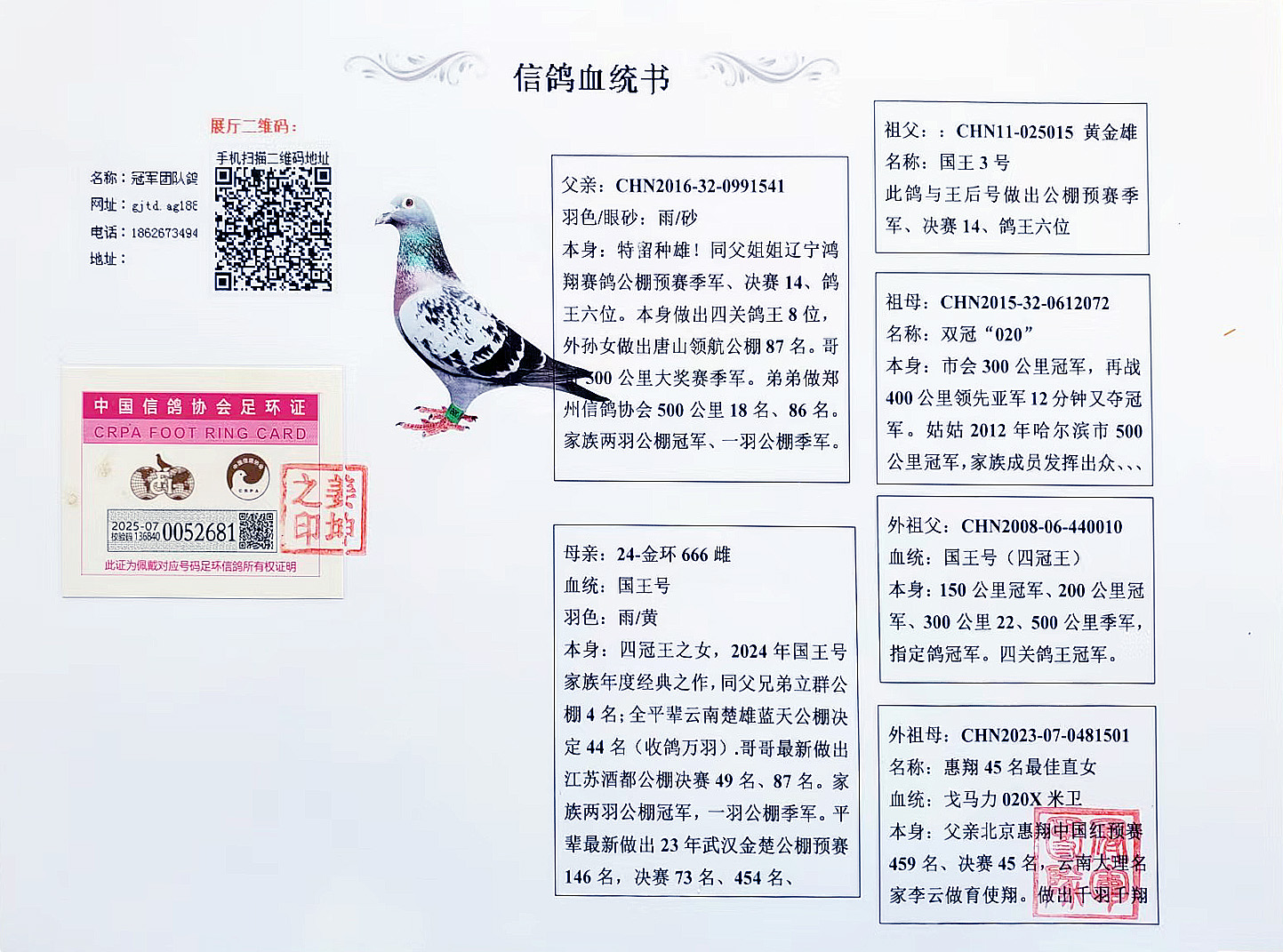 空間有限0元分享,假一賠百,機(jī)不可失。成績(jī)、血統(tǒng)永久保真。血統(tǒng)書(shū)足環(huán)卡隨鴿發(fā)出。