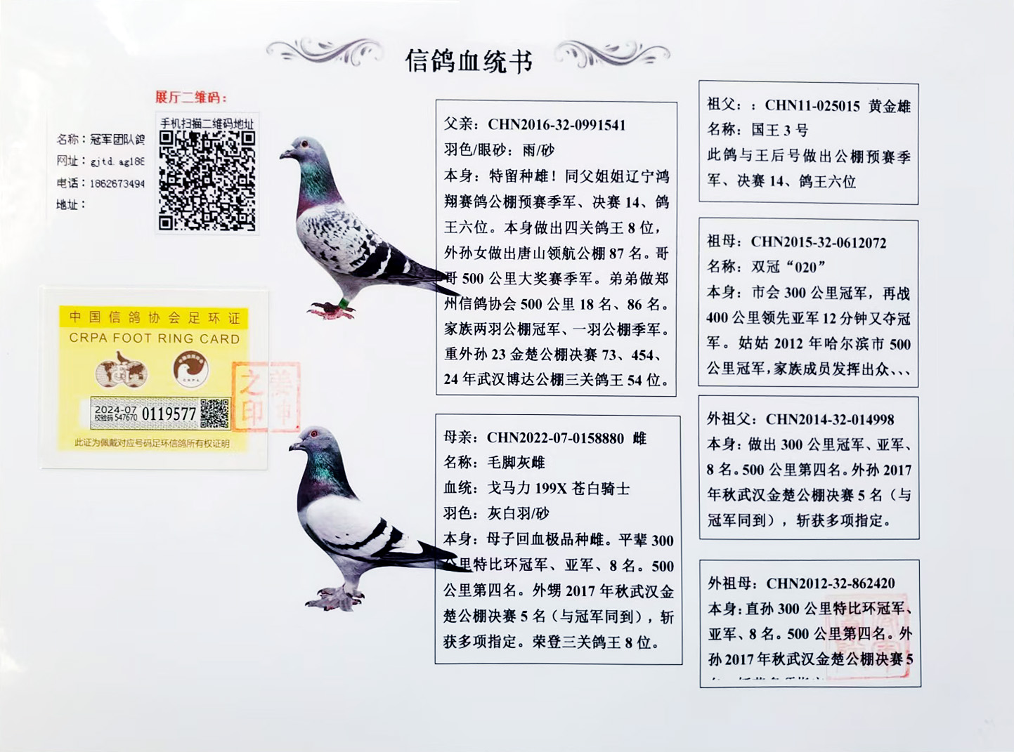 空間有限0元分享,純純種鴿眼,輩份極高,血統(tǒng)假一賠百,機(jī)不可失。成績、血統(tǒng)永久保真。血統(tǒng)書足環(huán)卡隨鴿發(fā)出。