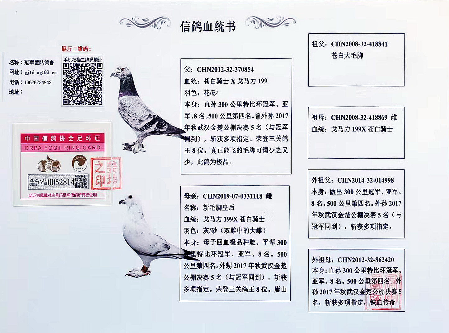 只賣真品!拒賣假鴿,成績、血統(tǒng)永久保真。血統(tǒng)書足環(huán)卡隨鴿發(fā)出。如假雙倍賠償。