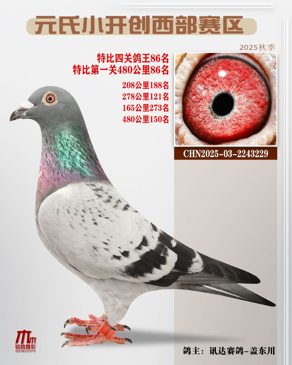 1602666 小開創(chuàng)西區(qū)特比四關(guān)鴿王亞軍 ¥1200元 2次