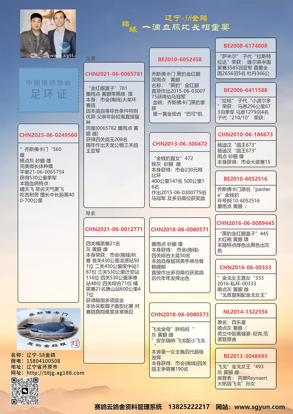 | 1602786 | 佛卡門(mén)“黑豹金紅眼配金錢(qián)豹直女”雄霸500公里21名669 | ¥5800元 | 0次 |