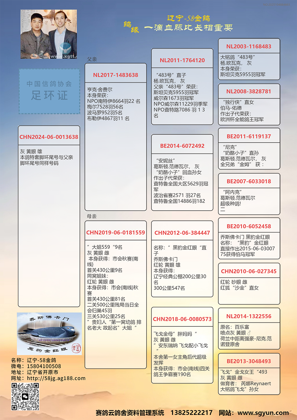 ③足環(huán)證 血統(tǒng)書 隨鴿同時發(fā)出