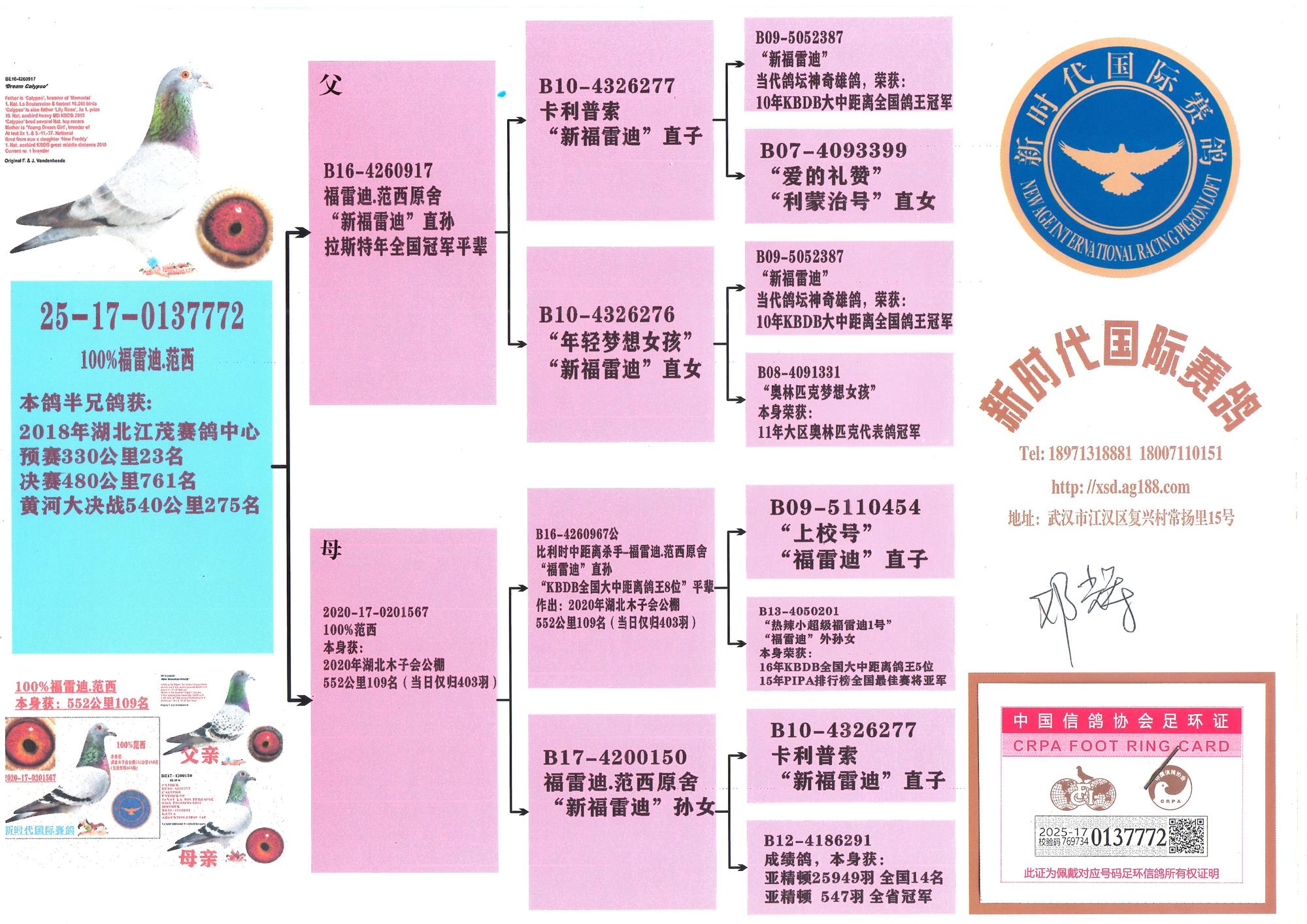 2013年波治全國(guó)18478羽亞軍 (范希.福雷迪兄弟使翔) “新福雷迪”孫代