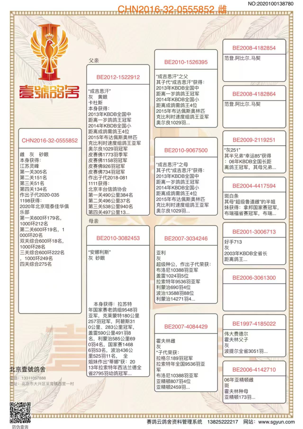 注明:5年以上的老鴿子更換環(huán)境有可能造成不能作育,請(qǐng)你謹(jǐn)慎出價(jià)