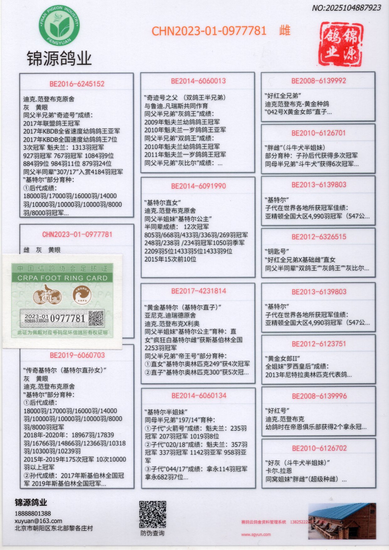 - 當(dāng)前查看拍賣鴿:傳奇基特爾直女23-0977781雌