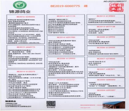 ①子代“灰鴿王”“雙鴿王”“灰比爾”“拿永冠軍”“超級(jí)980”“300雌(羅西塔之母)”…