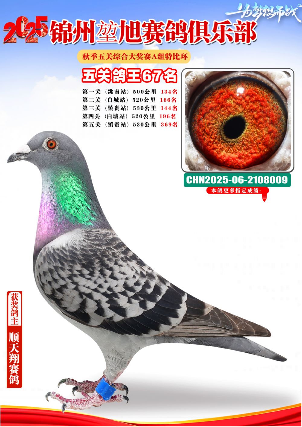 1603876 錦州堃旭A組五關(guān)鴿王16名 ¥500元 0次