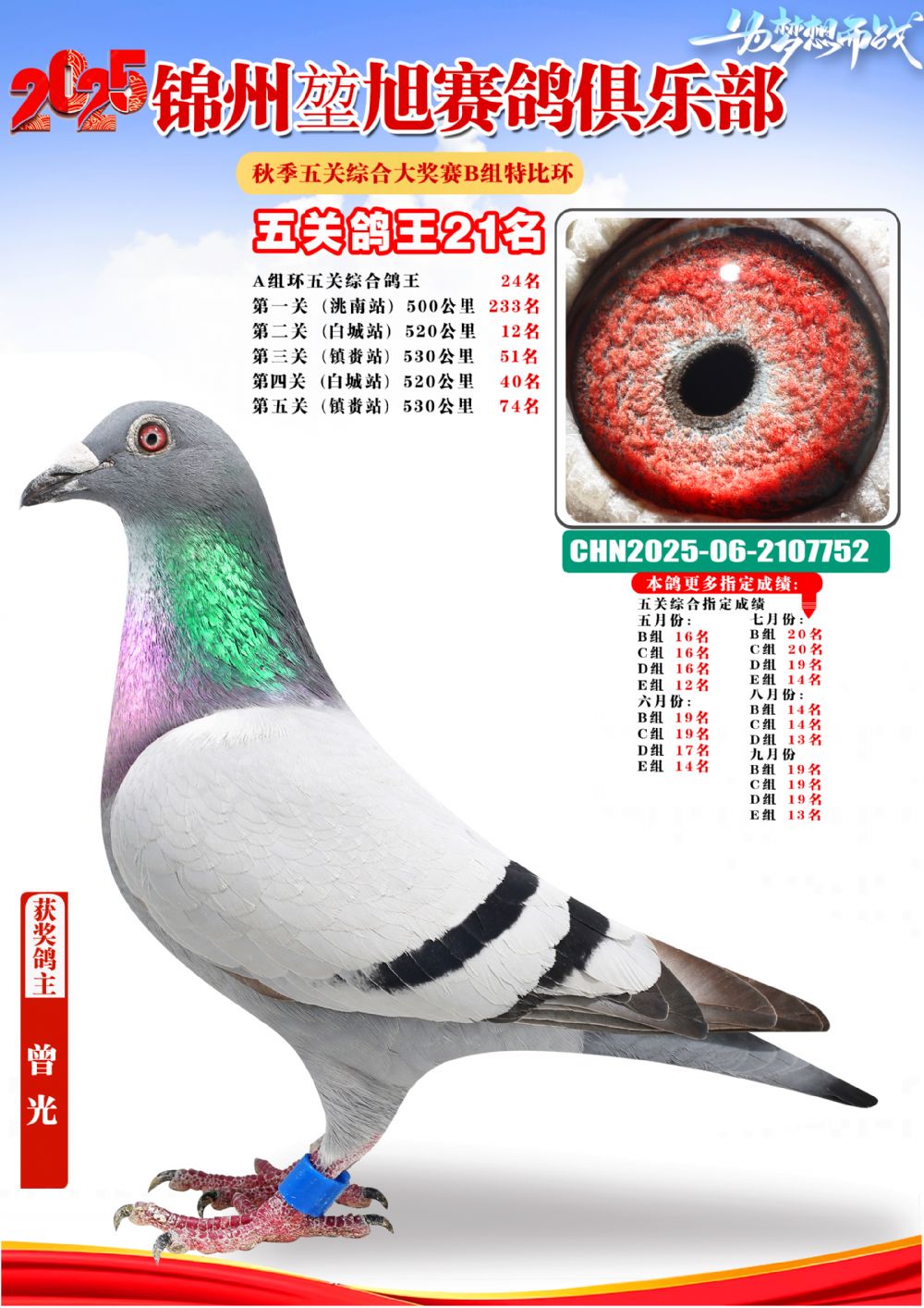 | 1603902 | 錦州堃旭B組五關(guān)鴿王7名 | ¥2000元 | 0次 |