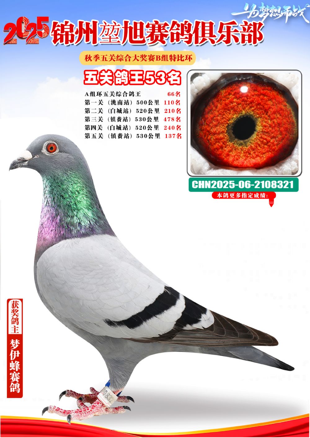 - 當前查看拍賣鴿:錦州堃旭B組五關鴿王53名