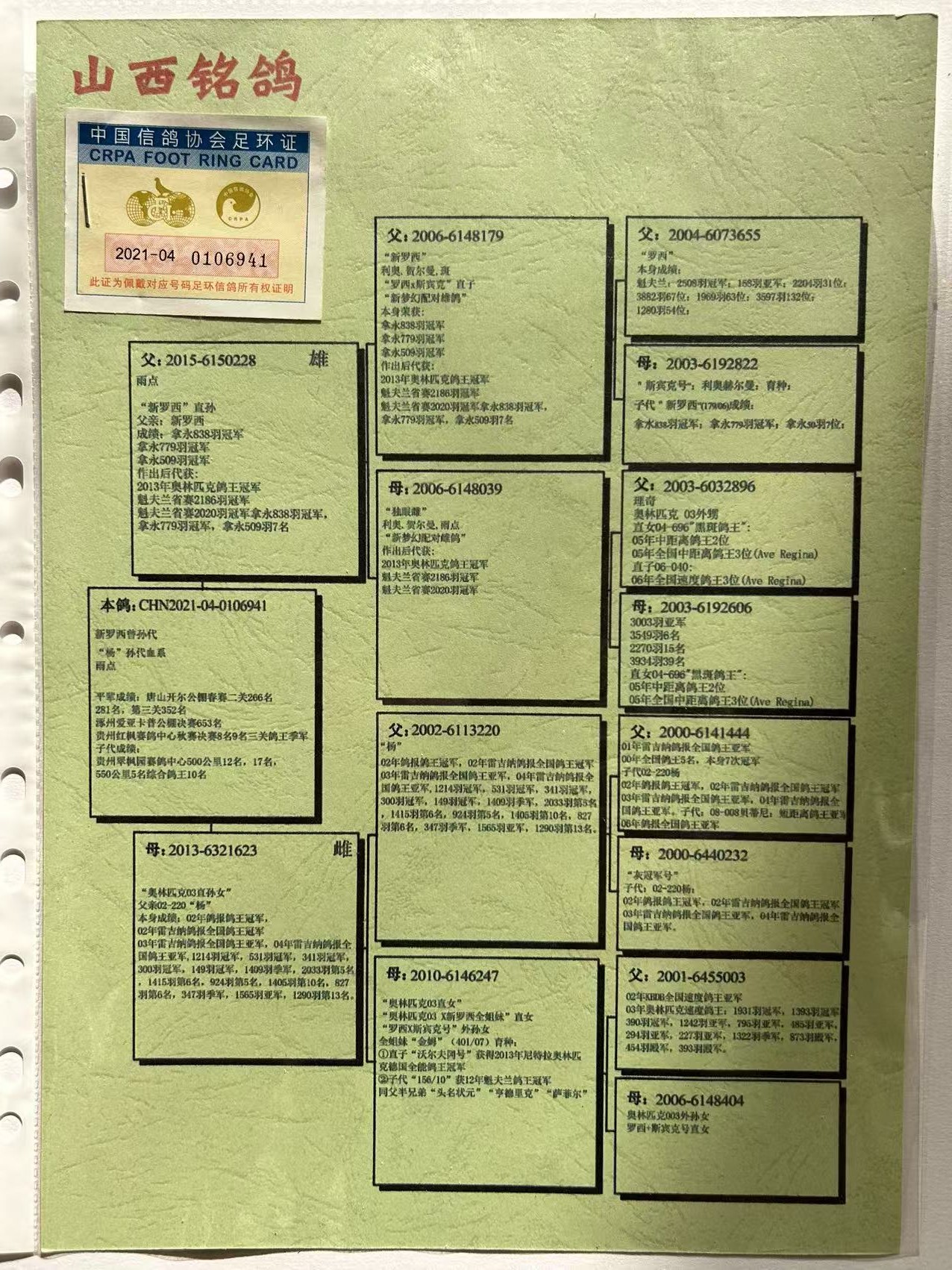 - 當前查看拍賣鴿:楊孫代血系 新羅西曾孫代
