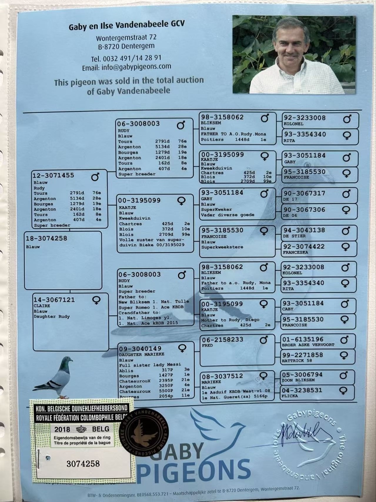 - 當前查看拍賣鴿:蓋比.凡得那比 雙重魯?shù)匣匮?/span>